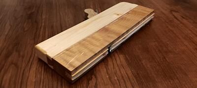Wood Turners 8Scraps of MapleAnd a small cut-off of 1/4" Plywood... 1/2" thick Maple scraps...2 ends, 2 sides...Needed to set out a few tools.. Lay out some dovetail pins, and saw the lines... Chop out the waste, use these Pins to lay out the Tails, and saw the waste away from the tails...then a dry fit was attempted... 1 corner done, 3 to go.... Maple scraps started out like this... After resawing off the nasty side of 2 boards (still have one to do,,)  steven newman | steven newman |