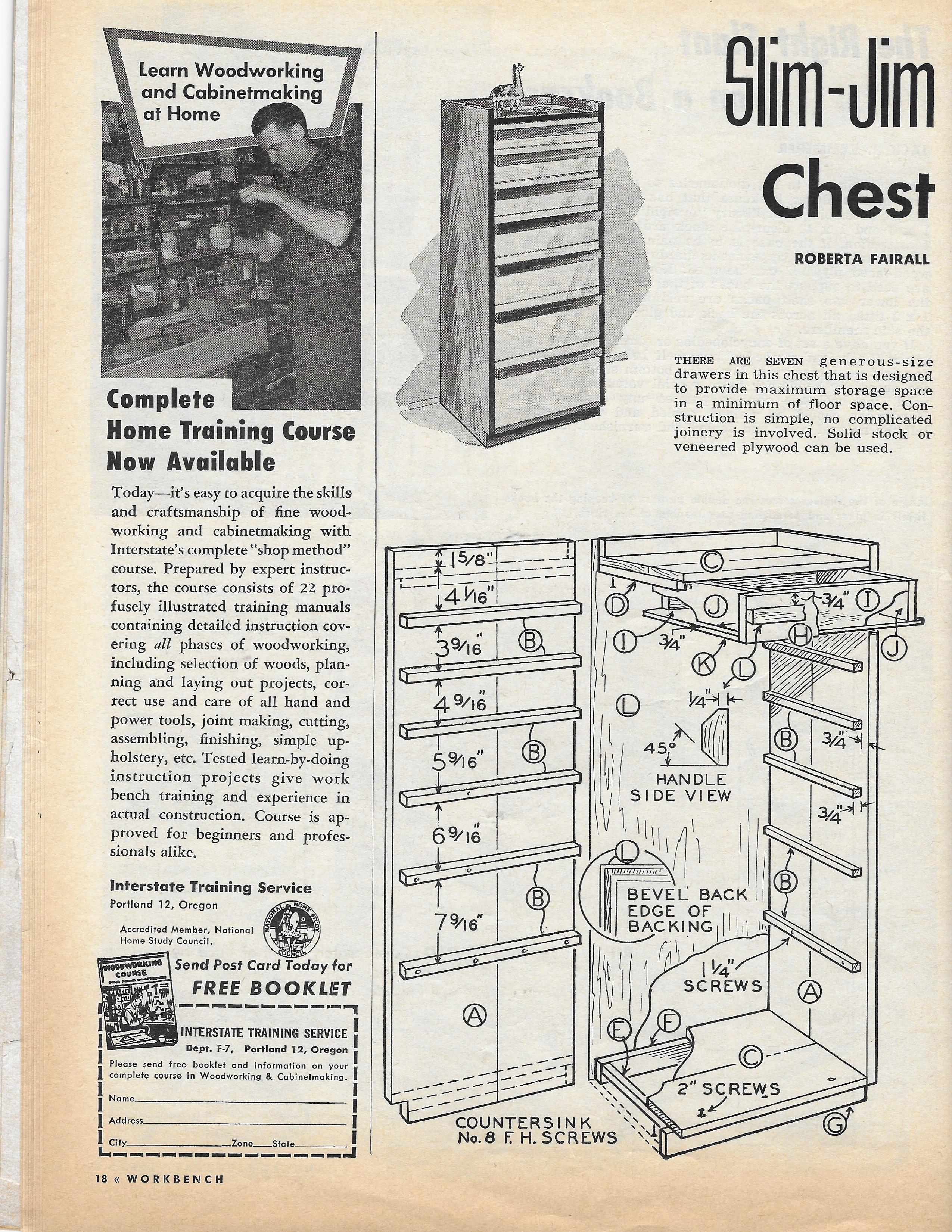 This is a really cool chest for your shop, it's basic, it has a nice cut list on the second page, and you can use this as a jumping off point for your chest or build it per plan, your choice!