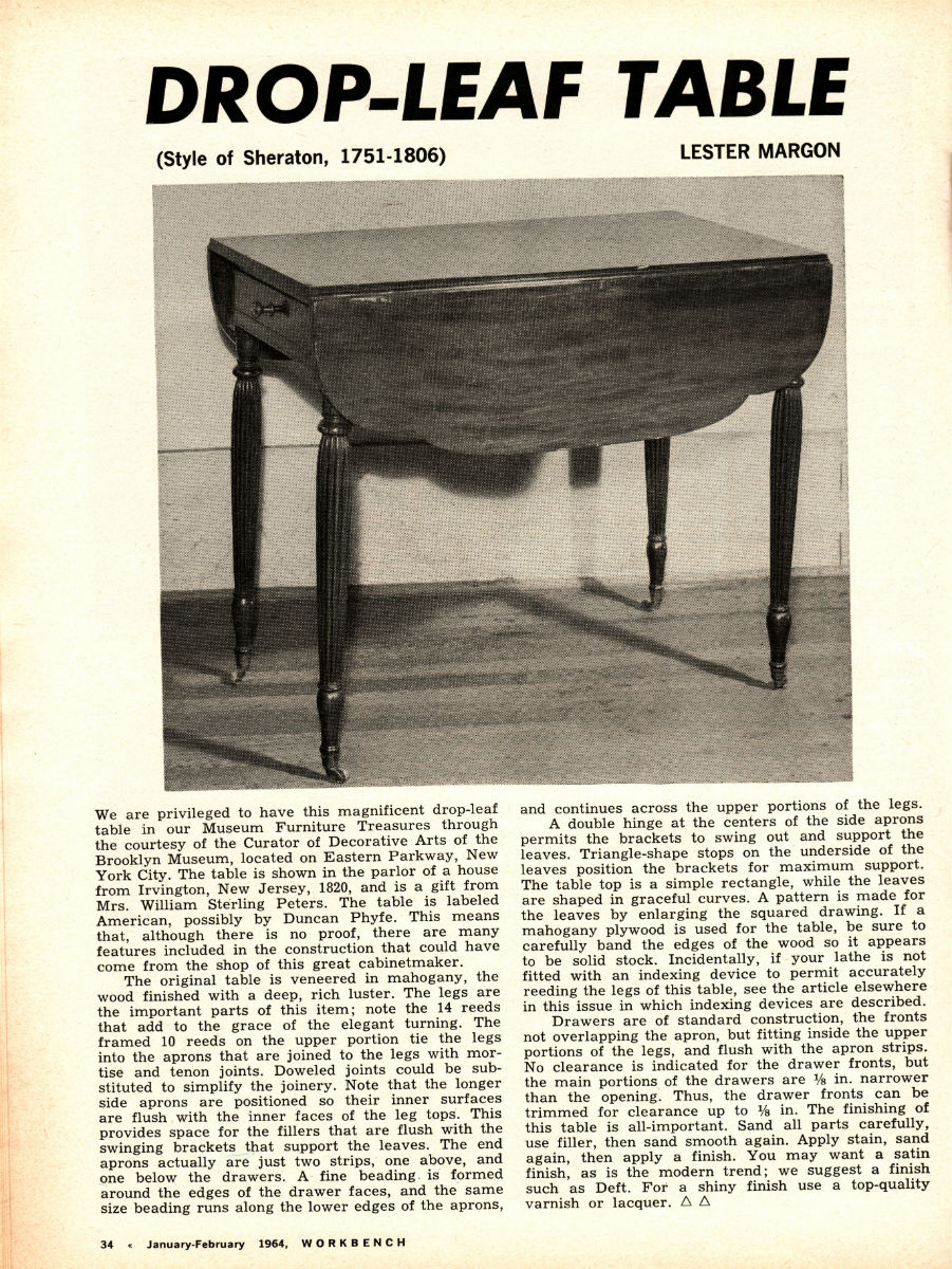 Jan/Feb 1964 Workbench Magazine Drop Leaf Table