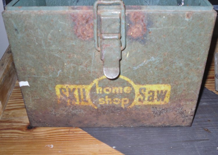 Might take this up to the local JVS School, and see wait those Juniors & Seniors  can do with it.   Just the box, though.    The saw will need a new blade, someday.      Runs like a top.    Just means i now have two "Vintage" old metal circ. saws.     This one by SKIL,  and a 7-1/4"   from Sears Craftsman.   The Sears one didn't have a case with it.     Maybe see IF those JVS kids could do an "Up-sized" box for it?   Or, should I just make a wooden box for it?