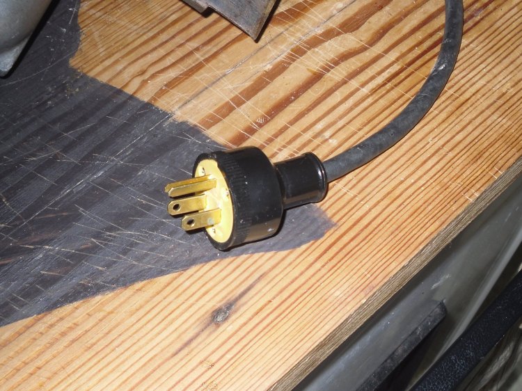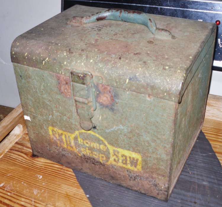 Just a small $5 metal box I found at a garage Sale last summer..ning-sdc13750-21238-16.jpg?width=750A little rusty?    Ah, but what was inside this little metal box?ning-sdc13745-21238-25.jpg?width=750It had a metal name plate...ning-sdc13747-21238-52.jpg?width=750some sort of angle finder thingy...ning-sdc13748-21238-99.jpg?width=750A "groovy" bottom, almost like a handplane"s??ning-sdc13746-21238-94.jpg?width=750and a 6" blade, with a diamond knock out hole to mount it to this little trim saw.   Main problem with it was it would not start.    Checked the brushes.....still lots of life left in them.    Looked at the cord, ok, seems something isn't quite right.     Cord coming out of the saw is a three wire, the plug is a two prong thingy.    Underneath the old white plastic tape...green wire was hooked to the black wire, the two white wires were connected, and the black from the saw???    Just sitting there.     I had a "proper" plug, and cut the old mess off.    Took maybe 15 minutes to install this....ning-sdc13749-21238-46.jpg?width=750Ohm meter said everything works, plug the saw into a breaker guarded outlet.     Didn't see any sparks, breaker didn't blow, and...... the saw runs like a champ!    Now I have a nice little trim saw, with a "case" to carry it around with.     It does have a short 48" cord (now) but that's alright.