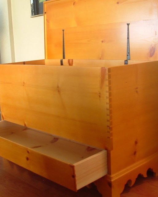 If you all get a chance, please surf on over to  Horton Brasses and check em out. You can also see our blanket chest we made, actually two of them and we used Horton Brasses Hand Forged Hinges in our chests and their Half Mortised Chest Lock set and Oval Keyhole Escutcheon and Period Drawer Pulls in both our chests. Pics below. The drawer pulls were not installed at the time the pine chest pic was taken.