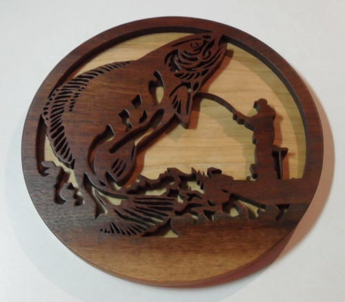 This is a Steve Good design that I just finished.  It's made out of walnut and sweet gum.  It's 9 1/2 inches in diameter.  Scrolled with a # 2 blade for all the interior cuts.  Sanded primarily with a sanding mop, and finished with mineral oil.  I have designed a stand for it, but not quite done with it yet.  Need to attach the hinges.  Thanks for looking and comments are encouraged and appreciated.