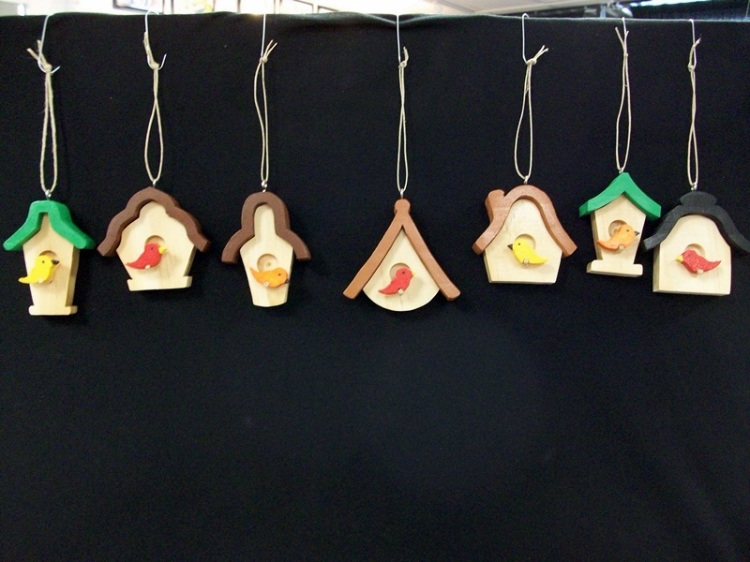 These I used pine for the house and teak for the roofs and sapele for the birds.