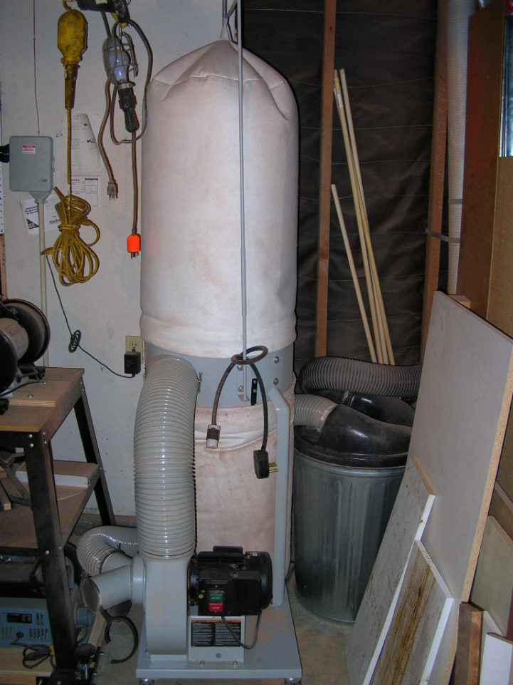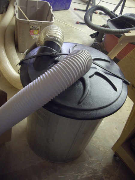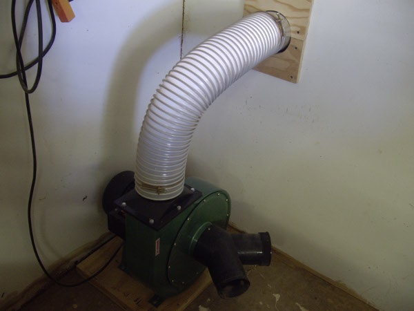 Here are a couple of pictures. I just ran a 4" vent pipe through the wall. The second picture is the collector that catches the debris. Very little escapes out the vent pipe.