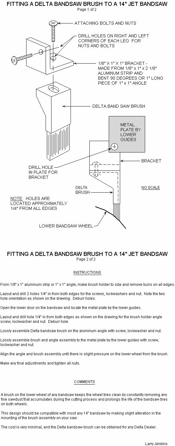 Some years ago, I bought a 14" JET Cabinet Band Saw.  There was no brush on the lower wheel to clean off the sawdust.