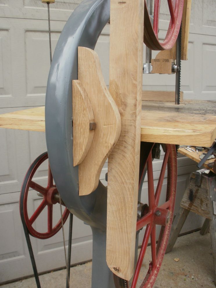 August 2, 201510 yr Author there have been some changes to both machines since the pics were taken like I said the motor is now a much older ge, the entire system has been reversed, manifold on the front, belt drive on the back. the old riveted tank has been taken out of the system(still there of course but not plumbed in. the titanic now charges up an 8 gallon portable compressor but im going to hook it up to a modern 20 gallon tank remotely mounted. the old pump will put out around 150 psi, air flow unknown yet. very quiet running, warm but not hot. still needs a drain in the water/oil separator, check valve and a new pressure release valve(not the safety valve, its there and works). the crappy wiring is gone(nmd 90 and an appliance cord!!). had to reset the pressure switch and adjust the old guage. the bandsaw has also seen some changes. added an auxiliary table, blade guard for the offside, and a mechanical remote for the motor mounted switch(steel rod and brass knob). the single upper guide has been replaced with a much smaller version and the big ugly one is now under the table I have lots of other pics, here's just a few, the guide shown was a prototype, a more elegant one is now installed