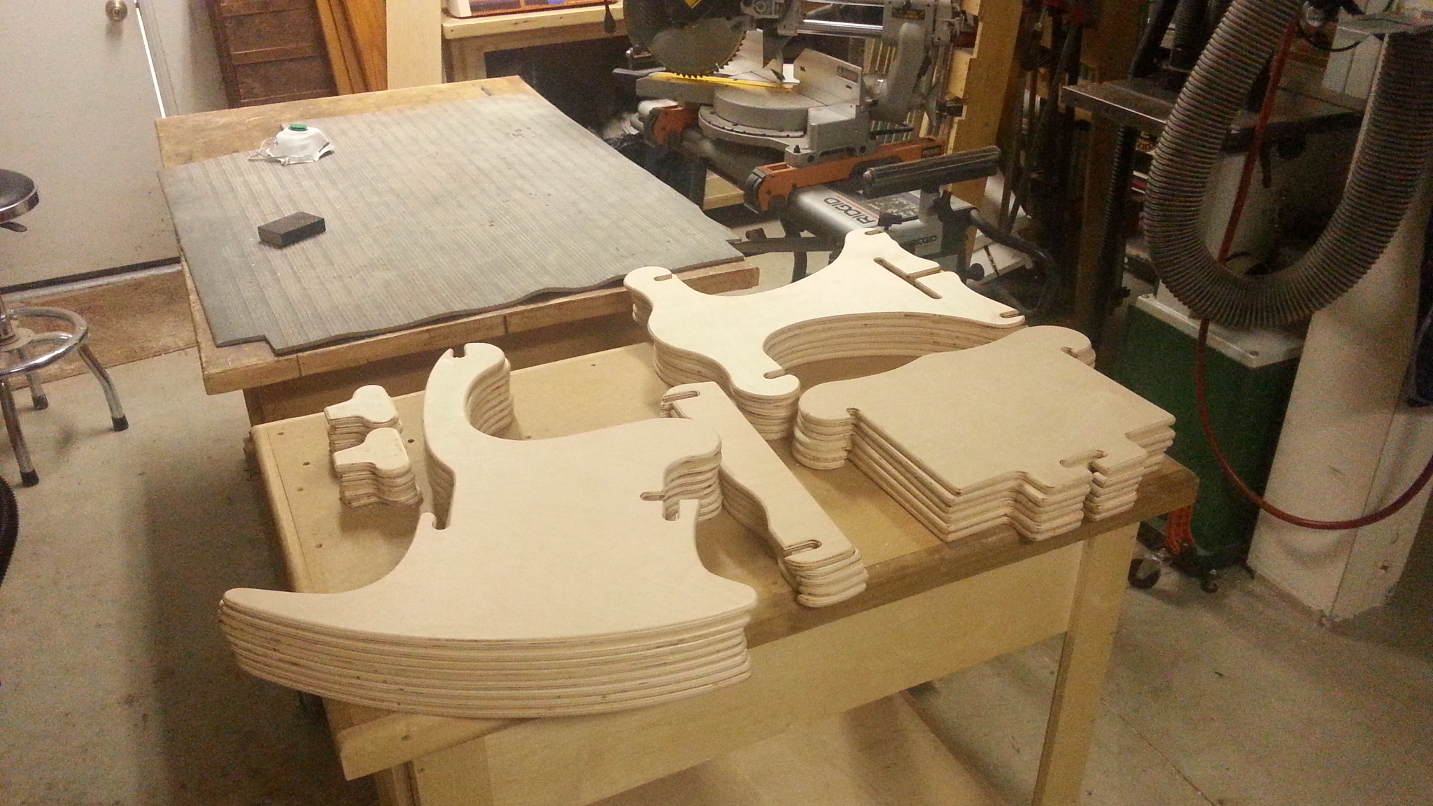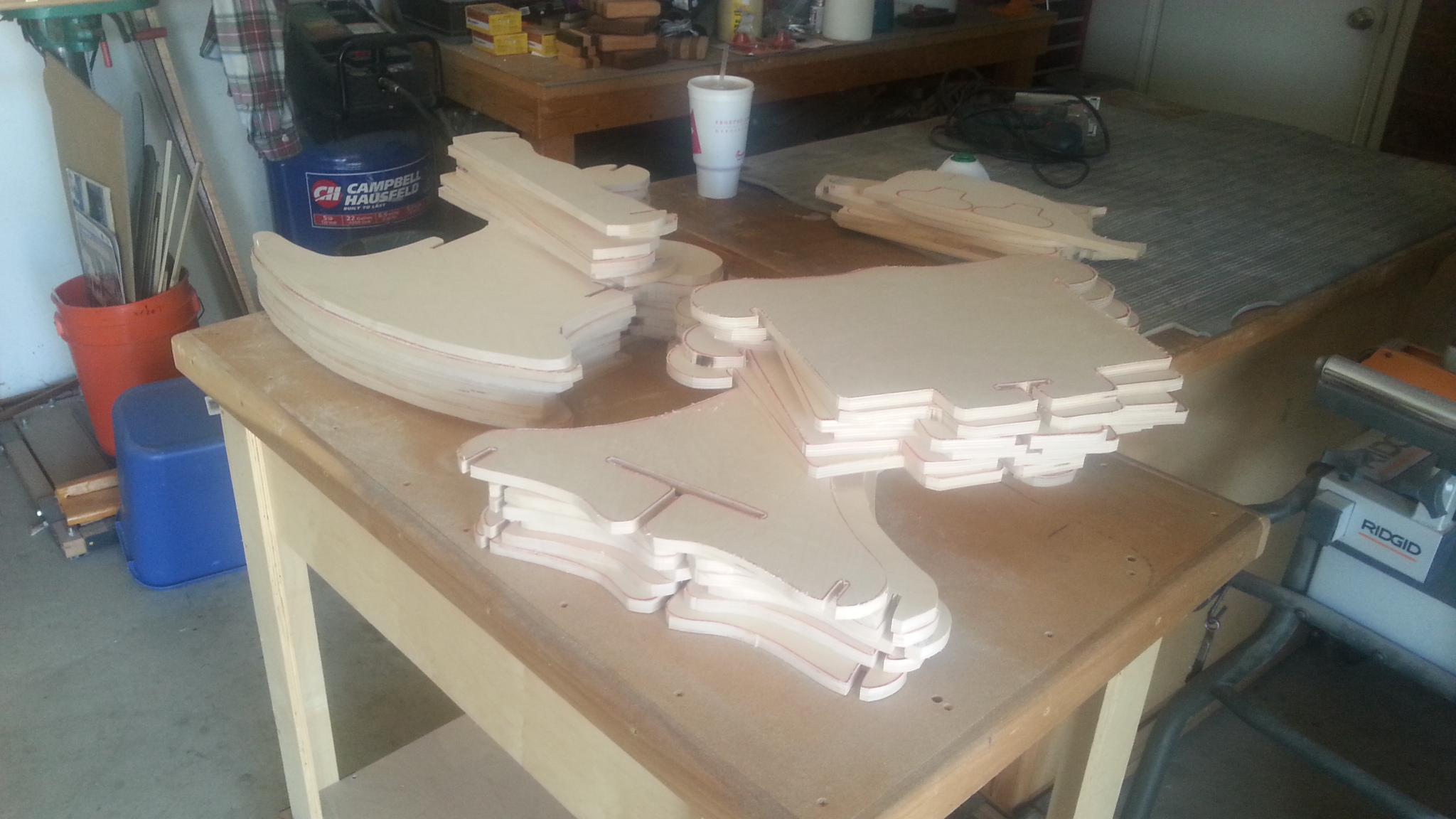Pieces rough cut using jig saw and band saw. This is the most time consuming part.