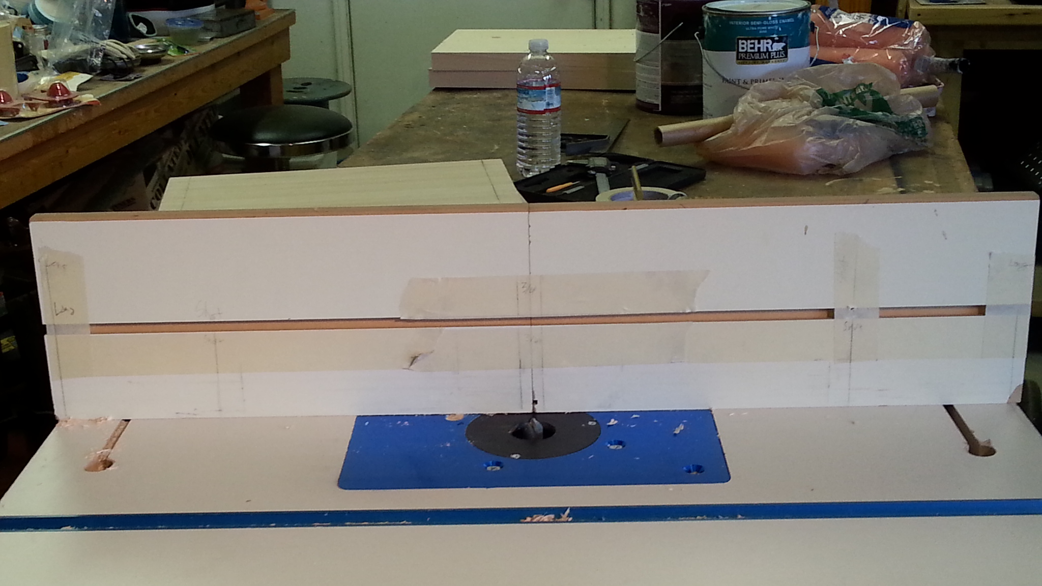 So once I got the 4 cutting boards all planed down and run through the drum sander, I took 2 of the cutting boards and cut them to the final size to work with. Since I had never done a blood groove before, I wanted to make sure that I could do a bit of experimentation to get it right. I could have done it by hand using a plunge router, but I was not real comfortable with that. So I planned on doing it on the router table. So I had picked up a 3/4"x1" round nose bit and got it set up in the router table. I laid out on the fence the width of the bit edges along with the the starting and stopping points for both the short sides and long sides as well as marking out the the points on the the 2 cutting boards.