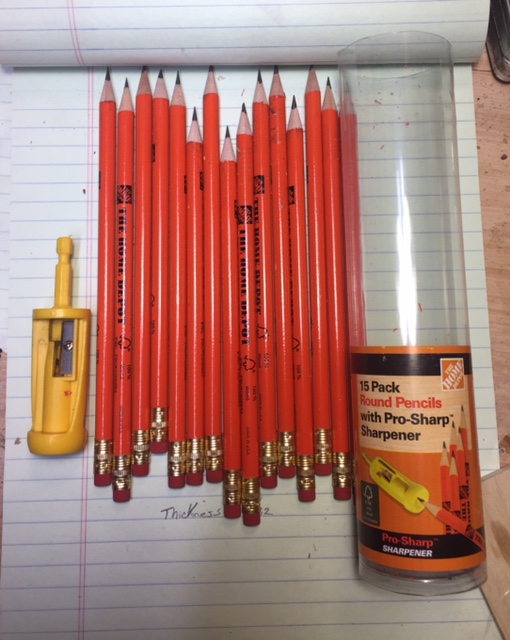 I was in the Home Depot and walked past this. 15 round pencils with all wood and great lead. The price was $3.49. That also includes a sharpener that you  put in your hand drill. I like the looks of it and being round it will fit in my compass. I looked it up on their web page and was surprised that it was priced at $10. Big difference from what I  paid.