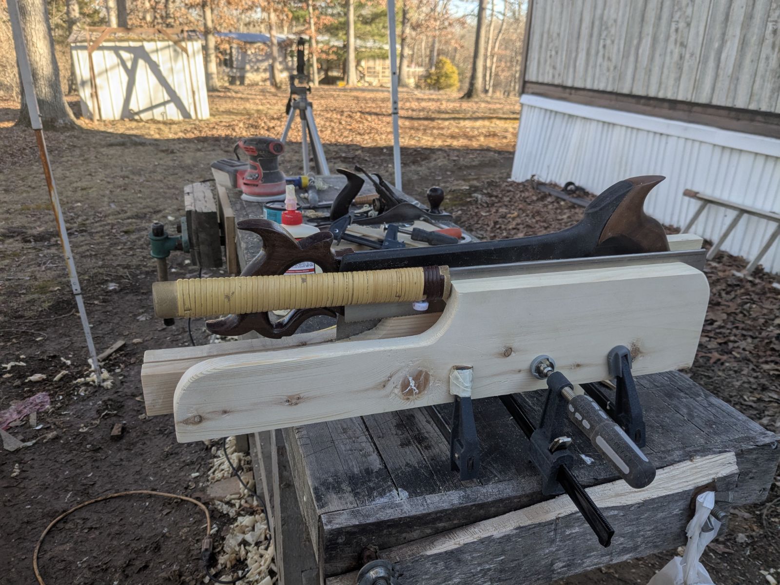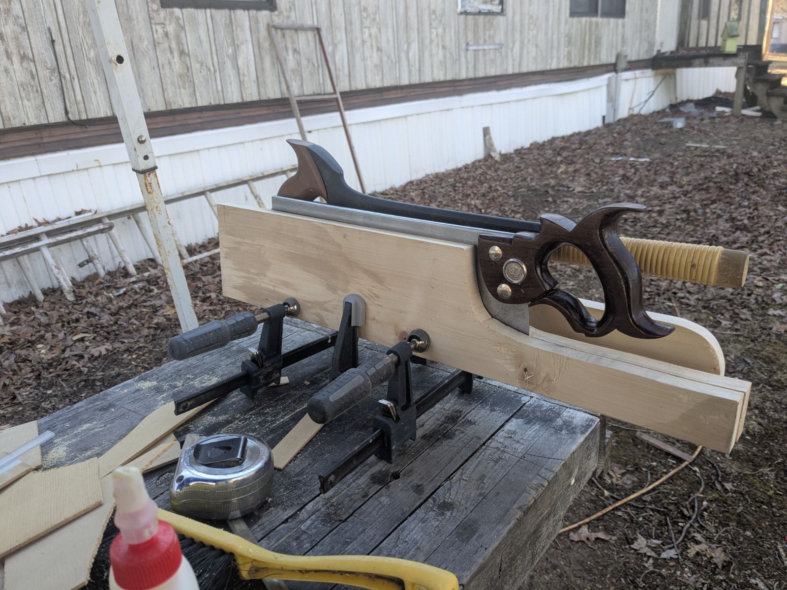 Was not satisfied with the sawtill that I had in my tool chest so I decided to build another one. It's still in progress it's got a lot more shaping to go but I need to let the glue dry first.PXL_20250214_205724561.jpg.c8cd76b37a36f7536679ddc4b318f836.jpgPXL_20250214_205740308.jpg.d8fcccfcc0761eddce8b5f93deceea38.jpgPXL_20250214_205801341.jpg.ded71f943c1c8f3ba58c28e70abba379.jpg