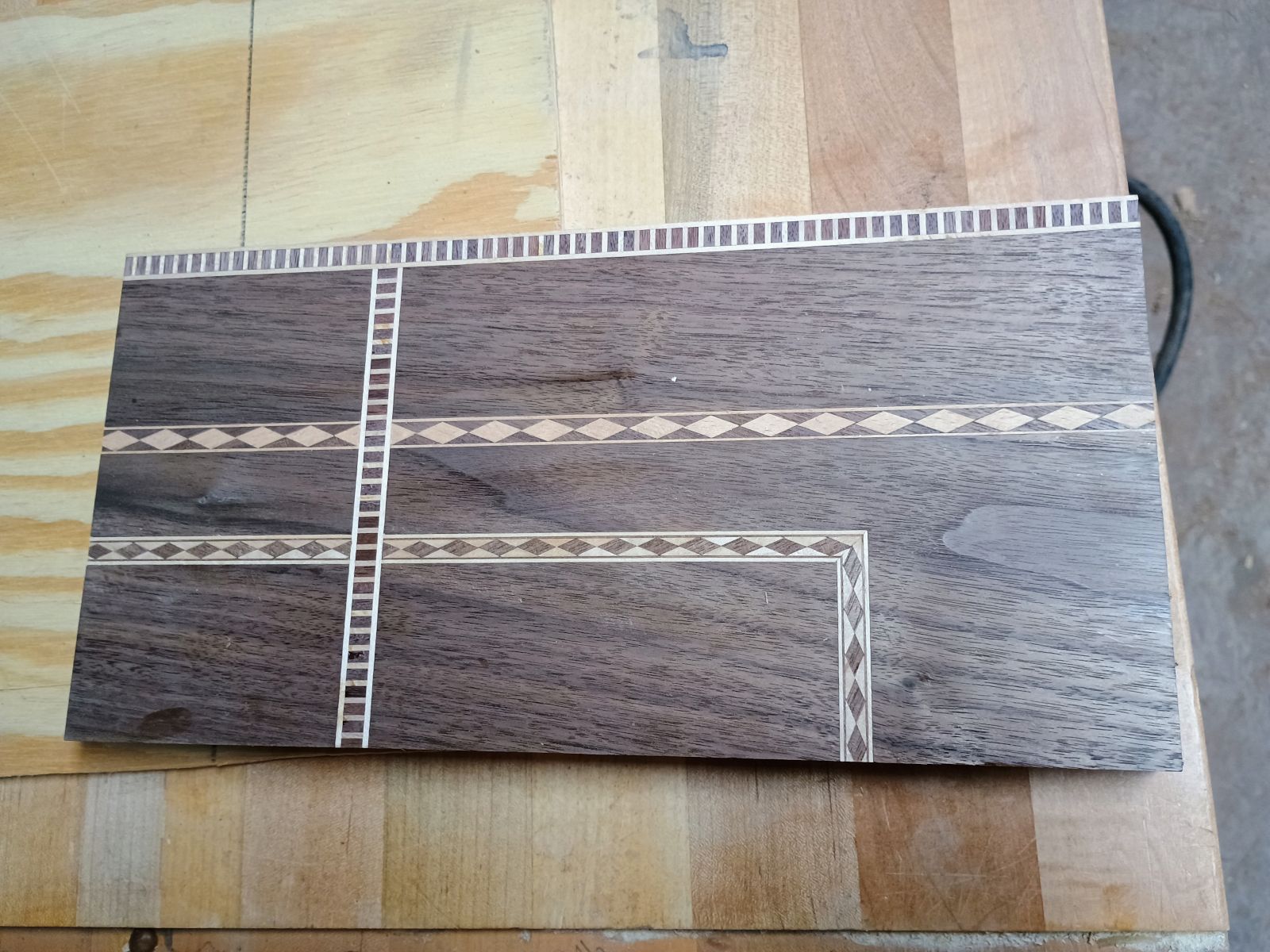 Next version will be the same diamonds as the one I just did (walnut in a maple field) but alternating walnut and padauk in maple.