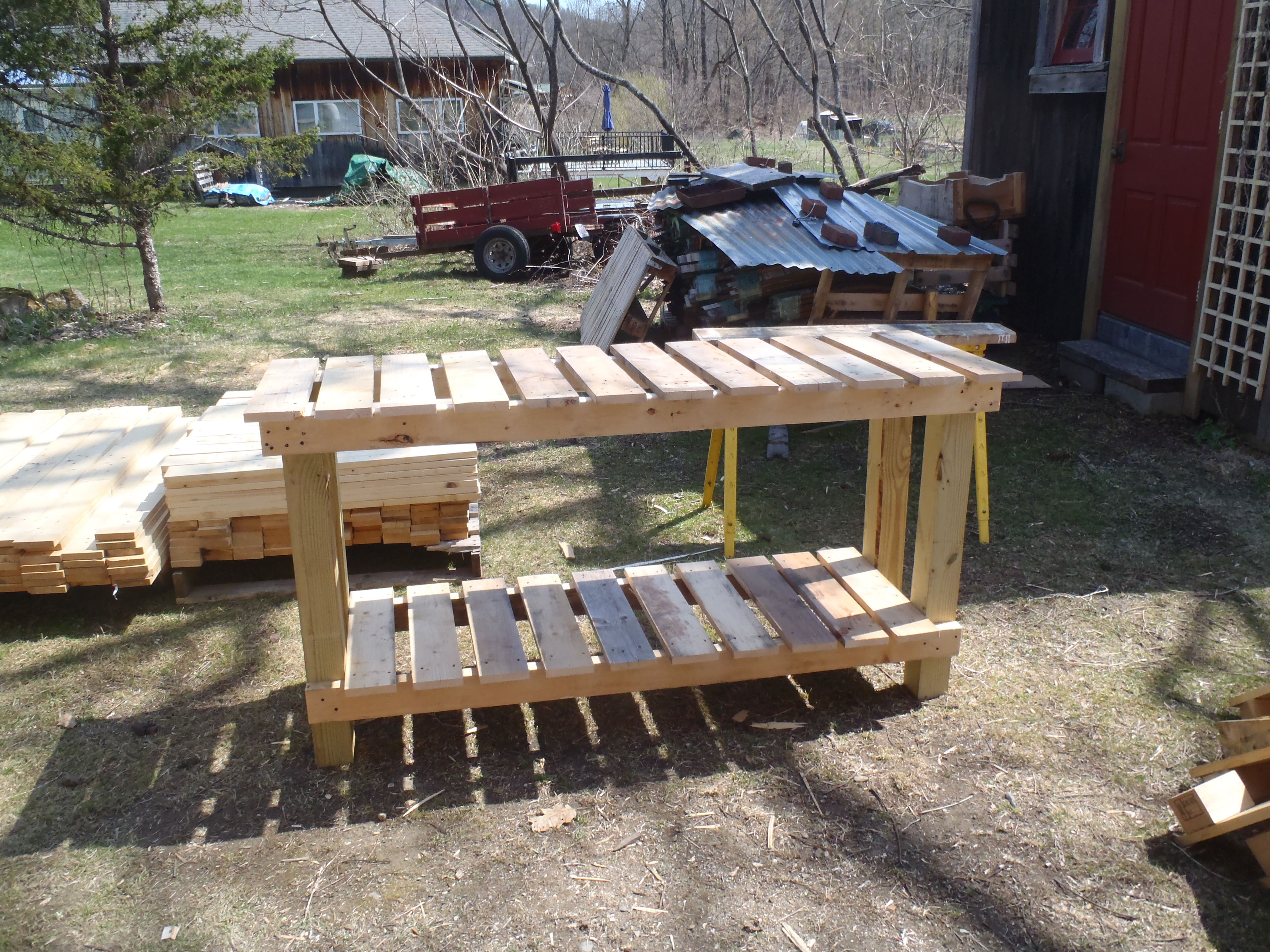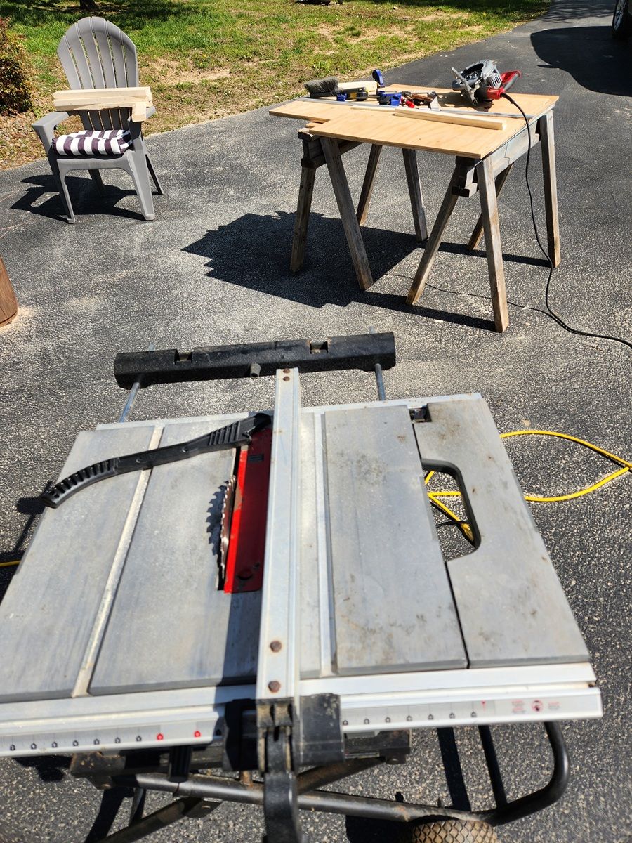 Not my official workbench(s),but sometimes I have temporary benches outside. Last week I got to try out my new saws,,just doing some small house projects but also trying to get my tool stand lined out for my drill press. It's gonna need some bracing under the tabletop.