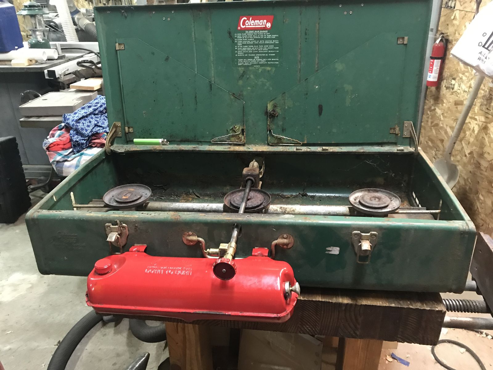 It’s a disaster as usual!  Clean desk, messy mind, right?  Have had an itch to get some white gas camping gear for awhile.  Reliving some good memories and whatnot.  August and September took me there, along with the propane lantern in this picture.  Lanterns and stoves have been finding me at garage sales.  I can’t lie...playing with fire has been a little fun and exciting.  Judging the bench shot in the last photo, my mind must be squeaky clean right now!  A couple recent project before and after photos included.  Forgive me things aren’t so “woodworky” in the project department the last few weeks.  The bench is busy all the same.
