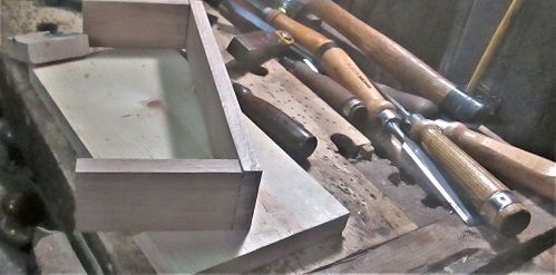 • Still working on Urn, just finished glue up on top.  Will put a profile on it and sand it down then  off to finish room.   Dry fit: