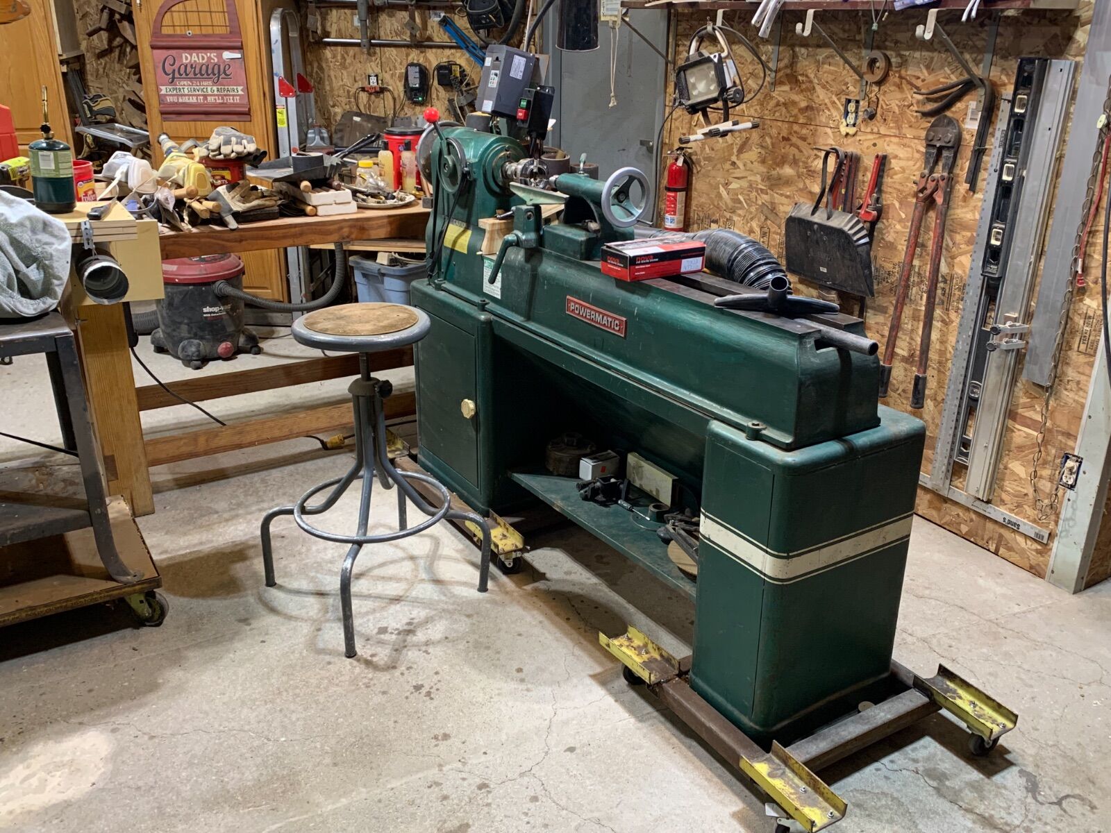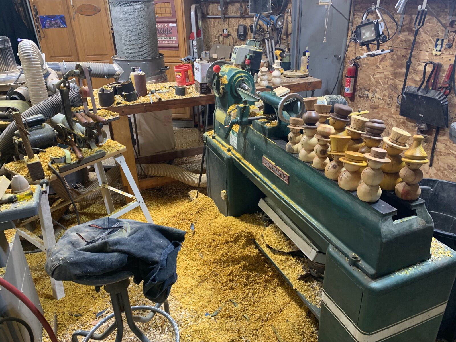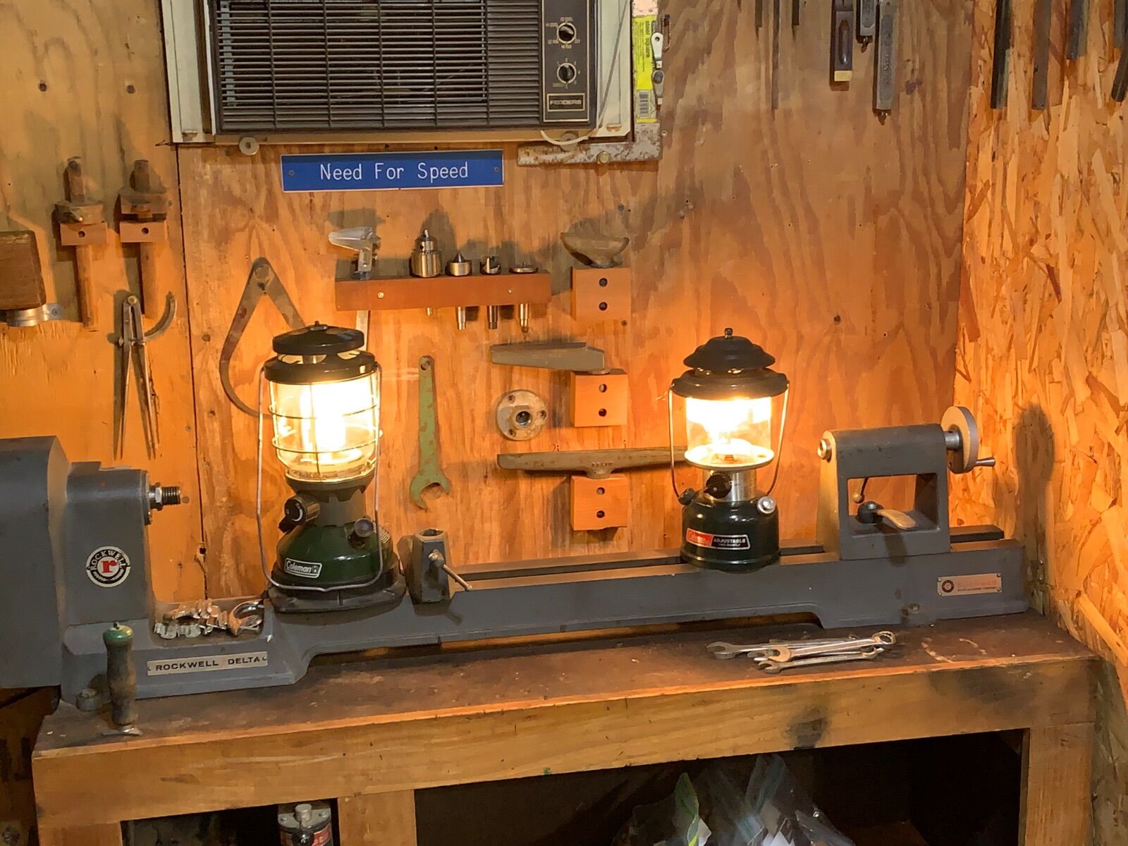 Without the sawdust I see some real ankle biters there.  I like how you set up your daughter's lathe but really man run a wire over and get her a light bulb.:D  I have a lantern looks like the one on the right.  Bought it new.  Been a lot of years since I used it.