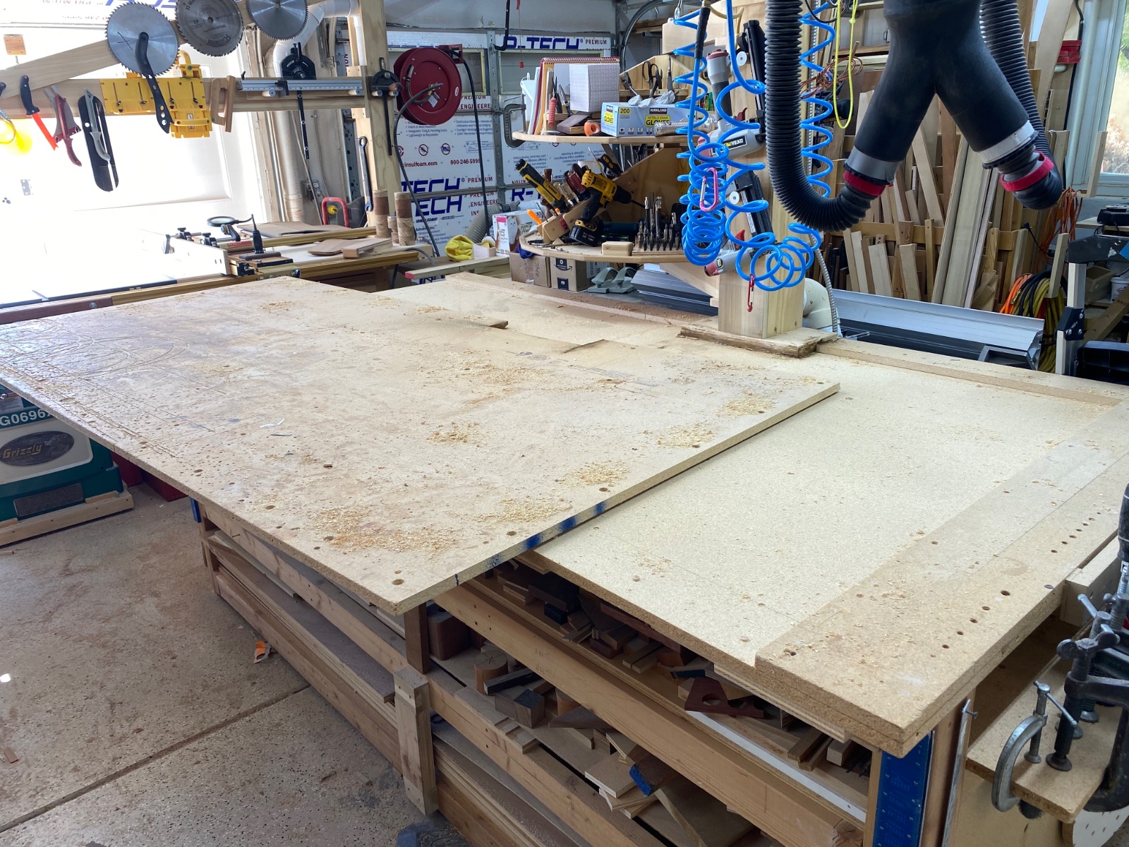 At the end of the Covid guff guff and feeling about 80%. Today seemed like a good day to replace the workbench top. It was getting pretty tired.
