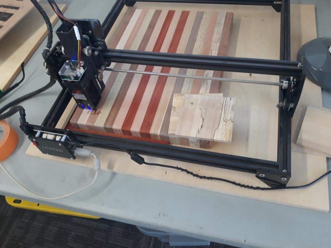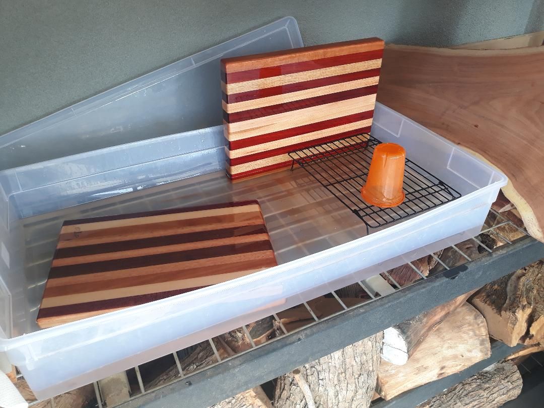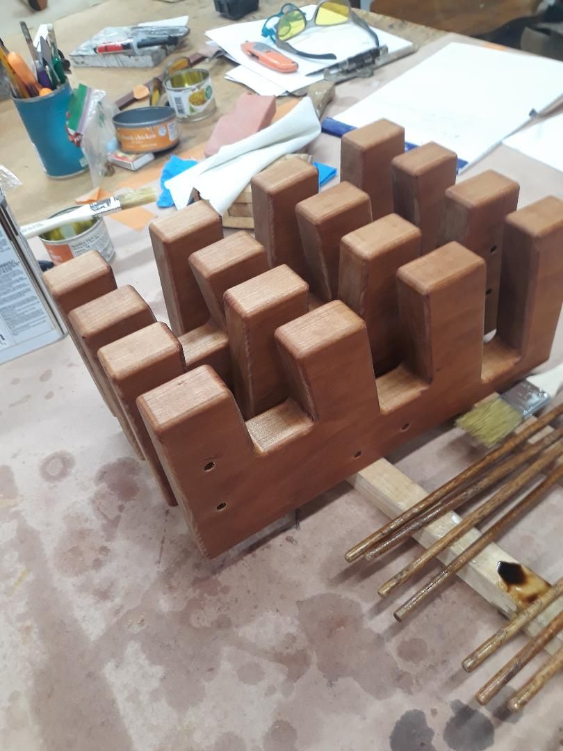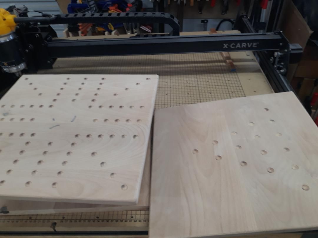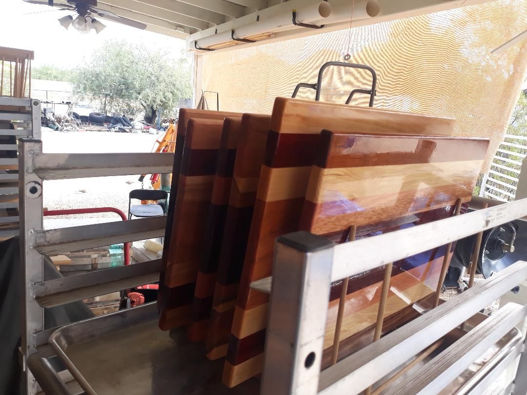 some sort of marble game, we ran on the xcarve, laser burning the logo into the boards, oil bath , boards in stands to drain and dry, stands for boards, been a biggie this year, and some rolling pins, always a huge hit, have orders for dozen or more. i'm slow on the lathe, but have all the blanks rough cut, have some bootiful mesquite to make a few out of.