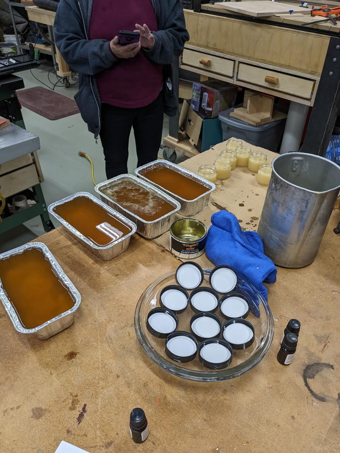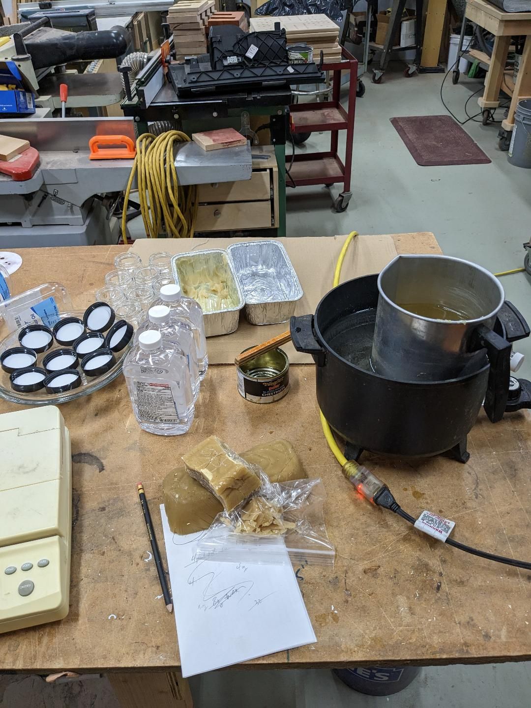 the ole gal made some more board butter today, i gave away a gaggle of it on saturday, you buy a big board, get oil and butter, with instructions o nboard care.