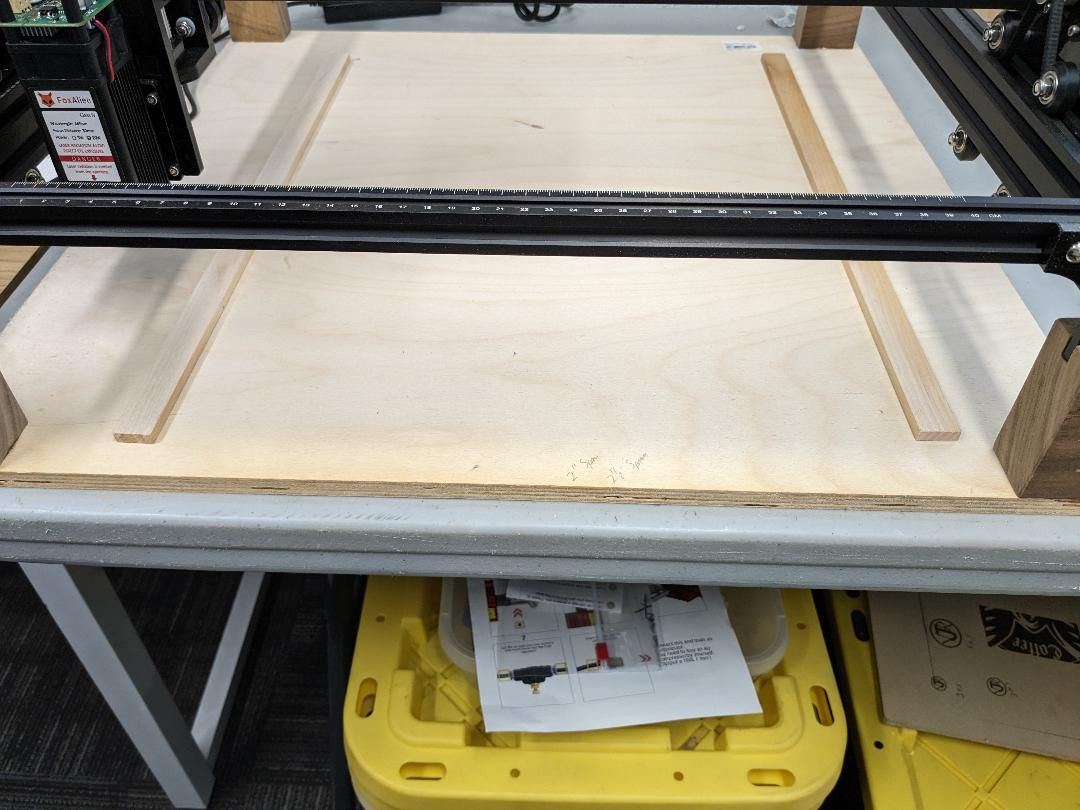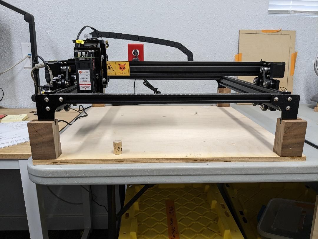 the ole gal was complaining she had to raise and lower the pad for the laser engraver, so began the process of adding risers, while the head itself has about 2 inches of travel shes been burning all kindsa crap, and one has to focus the laser to make it burn tight lines.