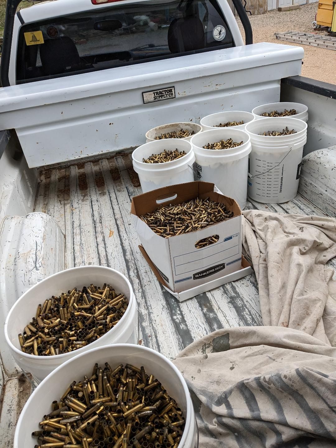 had 21 buckets of 223, 556, and 9mm with a smatering of .45 acp,
