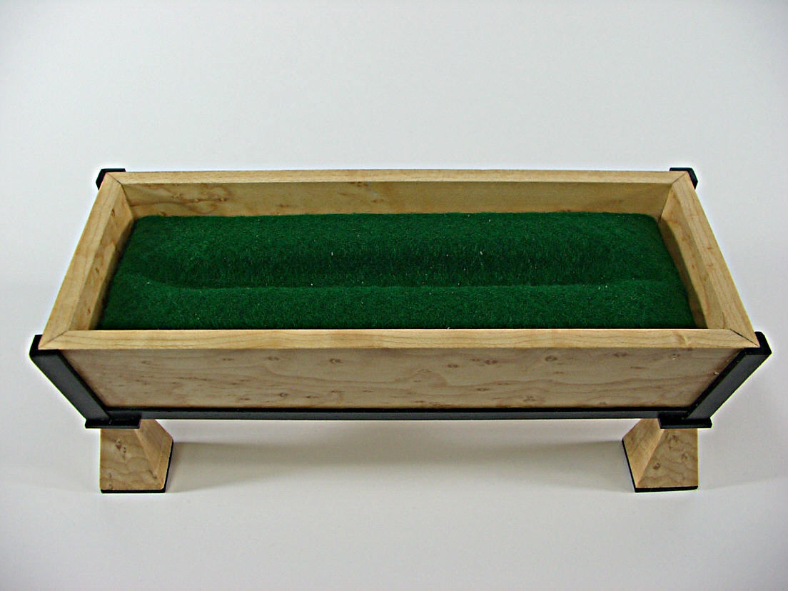 March 2, 20178 yr Popular Post Anyone for a cool game of billiards. Now the contests are over I would like to show off my 2017 Pen Box entry. This too happened to take first place. I had this idea in my head for over a year but was just not able to make it till I was able to return to my shop. I have to say I am sort of strutting my feathers on this one because it came out almost as nice as I envisioned it. I will say I had to make many jigs to pull this off because every detail needed a cut that is not normal. Doing all the compound angle cuts was challenging. Drilling the holes for the pockets needed a jig as well as cutting the rails and trim work. The rails and pockets are joined with mortise and tenon joints because end grain is not a very strong glue joint. I did have an oops when I tried flocking the table and rails. The paint/glue I used was too thick and the fibers did not stick well. I had another can of the stuff so I was able to sand back the old and add the new and it came out well. Was able to get it done in time too. Thanks for looking and any questions or comments are always welcomed. Hopefully I can get the pen I have designed for the box done, very soon. I have included a full size billiard ball that I make clocks out of 2-1/4" for size reference.My replica pool table box is made from Birdseye Maple and Gabon Ebony. It's measurements are 4-1/2" X 9" which is a scaled down version of a professional table. It was dipped in BLO and then top coated with 6 coats of satin lacquer. The table top has green flocking on the table as well as the bumpers. The cues were turned from maple blanks and are also satin lacquered. The butt grips are wrapped with carbon fiber. The billiard balls are miniature replicas. The rail sites are round black Swarovski crystals.All the materials used were cut and angled using various jigs. The table is an easy lift off to access the pen box compartment which has a green plush felt cushion for any size pen. The lid has guide blocks to properly seat it easily on the box.This is a neat little box which will enhance that special pen for that special billiard fan. Edited December 7, 20178 yr by Ron Dudelston tags added