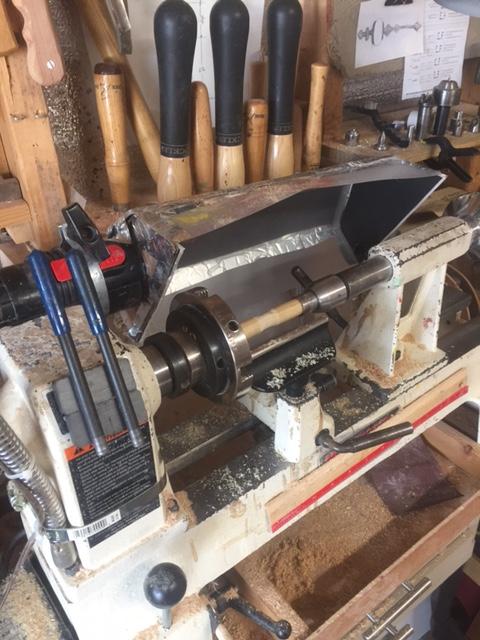 I have a Jet mini and wanted to use a vac to help with the saw dust problem. However I have very limited space. I got some cutting board plastic  and some   quarter inch styrofoam from the dollar store. I used some left over tape from a furnace duct job.  The kind that has real aluminum. I sized it for my limited area and put in a support with an adjusting clamp. It turned out OK and I am anxious to start a new projedt.