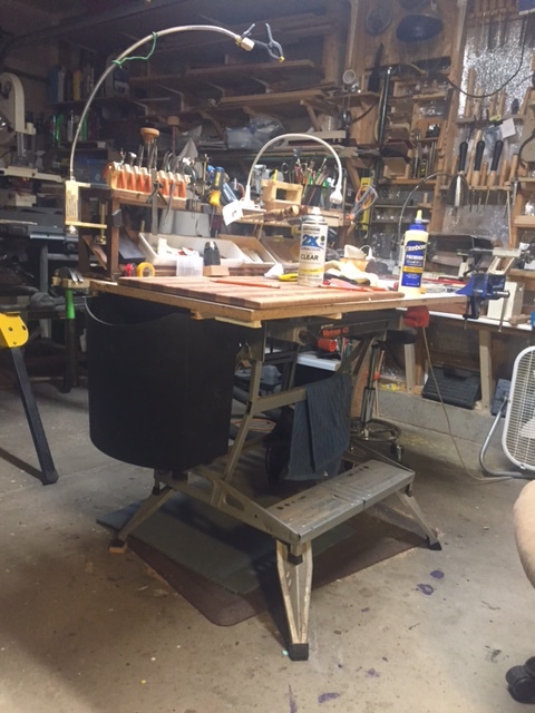 Allen Worsham Posted July 18, 2017 Report Posted July 18, 2017 The cheap and easy way to go is to pick up a 4'- 6' plastic folding banquet table from Sam's Club or Costco or other big chain store. Then using standard 2x4's or 2x8's make a pedestal to raise up the low end of the table to level. I have done this before and it works out good. The plastic tables work great as the dried glue comes off easily. PeteM, Nickp and Grandpadave52 3 Quote