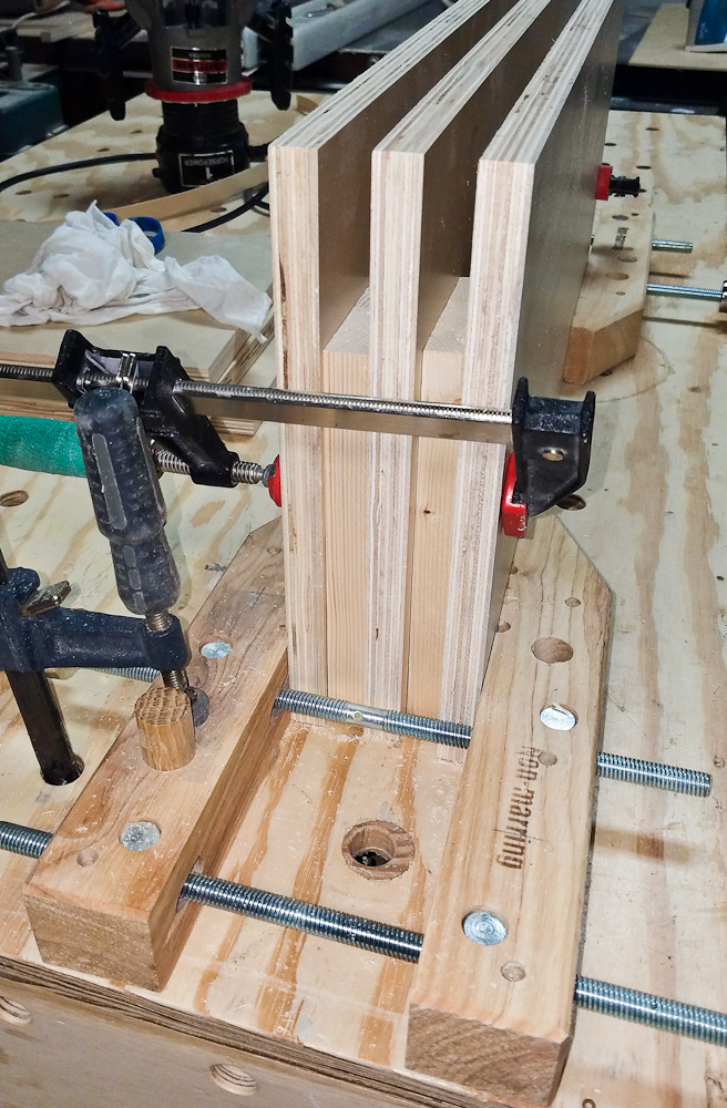 Popular Post MT Stringer Posted August 18, 2017 Popular Post Report Posted August 18, 2017 While building some cabinets for a kitchen remodel, I had to apply edge banding to several shelves. OK, it was 14 of them! I had seen a Woodsmith video where they demonstrated how to trim the edge with a router, so I tried it. That was easy and went fairly quick also. Basically, you do two or more shelves at a time. Put them on edge with a spacer in between. Then run a router with a flush trim bit along the edges. Zoom, zoom! I think the pictures tell the story better than I can describe it. The wooden hand clamps worked very well to stabilize the whole thing. Well, I might have used a couple more clamps to keep everything stable. Grandpadave52, Fred W. Hargis Jr, HARO50 and 5 others 7 1 Quote
