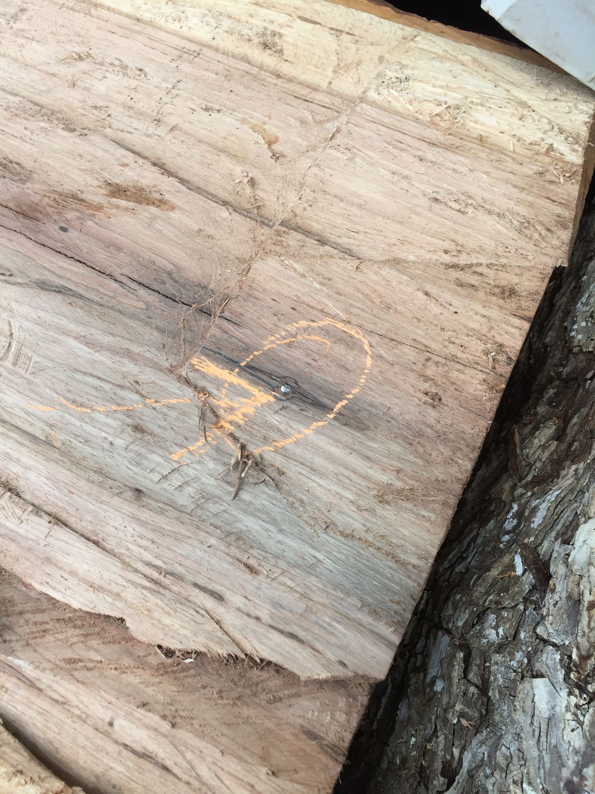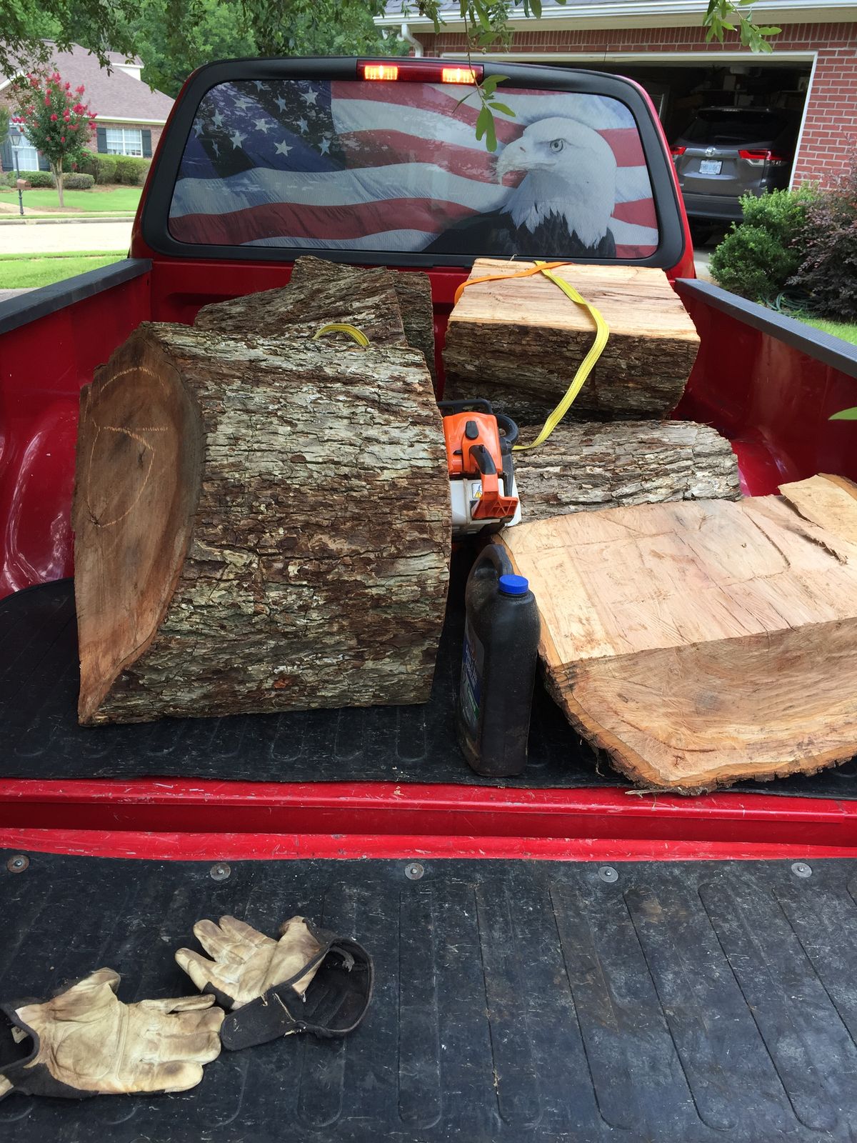 • Went the tree for more blanks. We cut 10 but some will either not be thick enough or not wide enough . All at least 4 inches thick and from 13 to 16 wide. In the pic of the tree there are 3 logs we le