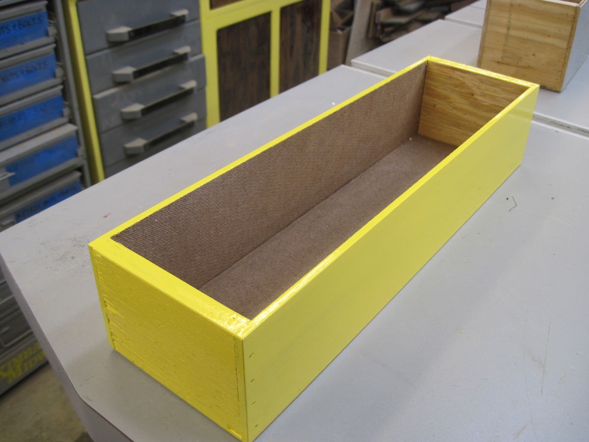 Last one has been sanded 3 times, 120, 150 then 220.  Inside and out, rounded edges.  3 coats of paint.  Bottom was lined with vinyl.  No reason just some him some other things that can be done.