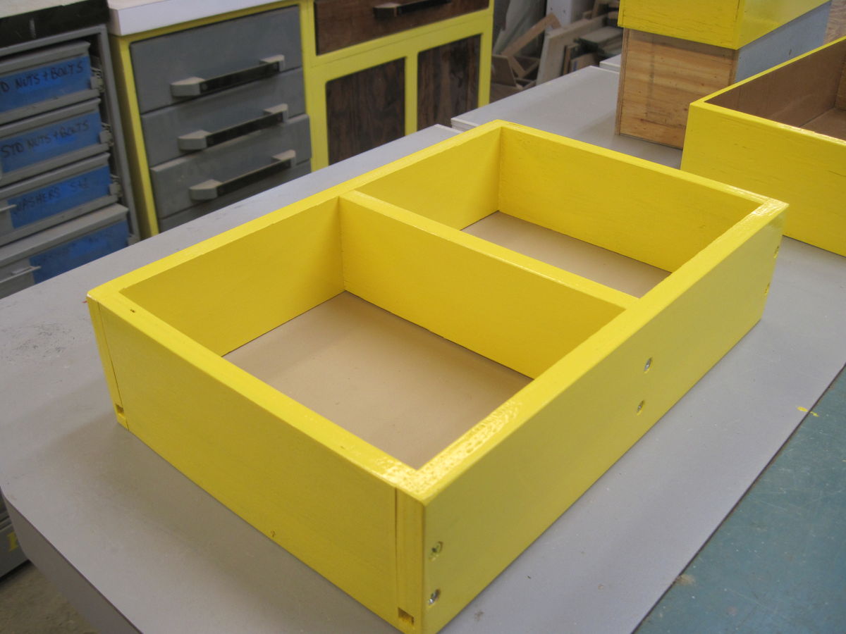 My apprentice made these 4 drawer inserts.  He wanted to learn how so he can make his own.  This was a lesson in planning, as well as finishing techniques.  All of these are made from scraps so some had paint on them.  No problem for this shop project.