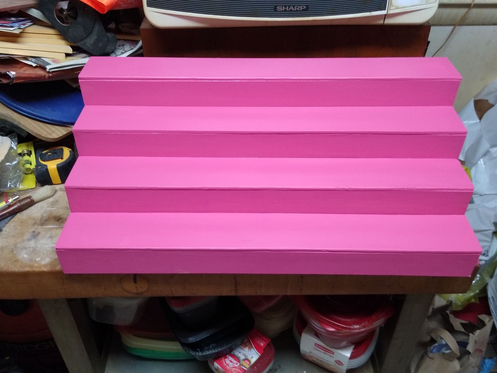 Client wanted a Barbie doll stand. Would have been cheaper to build a set of steps stringers and all. Thank God the client thinks it's beautiful. Whew!!