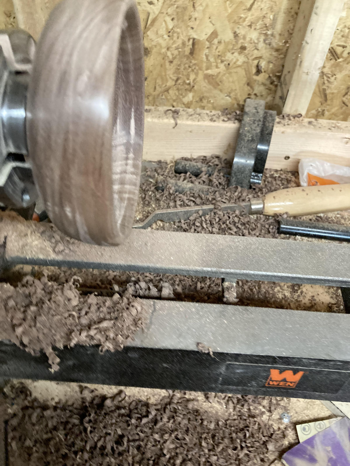 The next step I have to figure out is what to do about the tennon I cut on the bottom of it for the chuck to clamp down to.  Its going to take a bunch of sanding with the disc sander to get that rounded out to the way I want it.