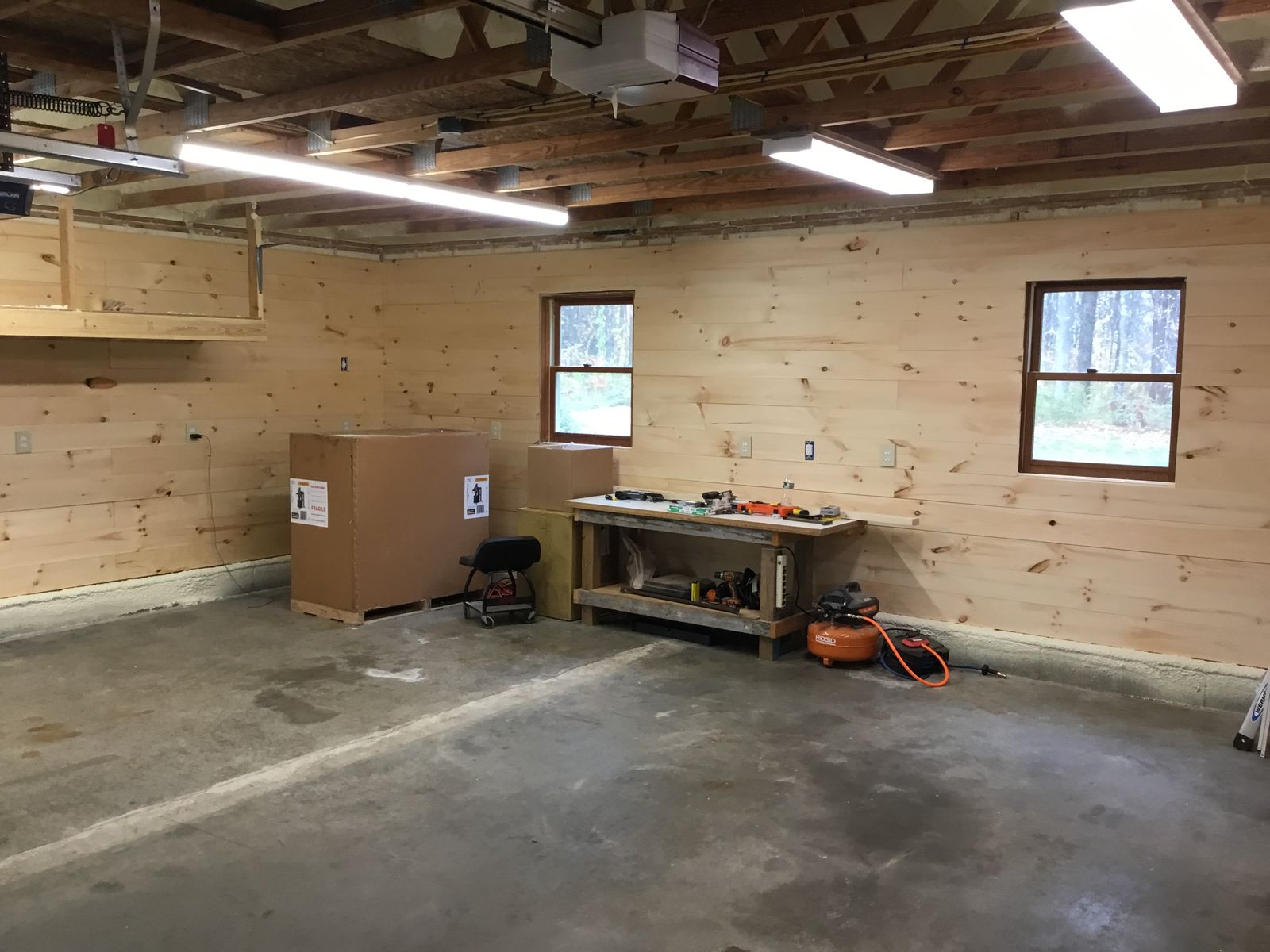 November 1, 20205 yr Popular Post It’s been a long and tough journey getting to the point I’m at. We finally found a house in Barnstead, NH with an oversized two car garage. We got it at a pretty good price and had some money left so I could get the garage ready for my shop. I had some foam insulation blown in and had more outlets installed and some better lighting. We (Amy wife and I) put up some shiplap pine for the walls. I have all my tools here, but the shop still isn’t ready. I’m waiting for a mini split to be installed, and still have some trim work and to roll out so my water based poly on the walls. The mini split won’t be installed until after Thanksgiving. I’m still experiencing other issues. I can’t tell you how difficult this move has been, but we’re getting there....sooner or later.