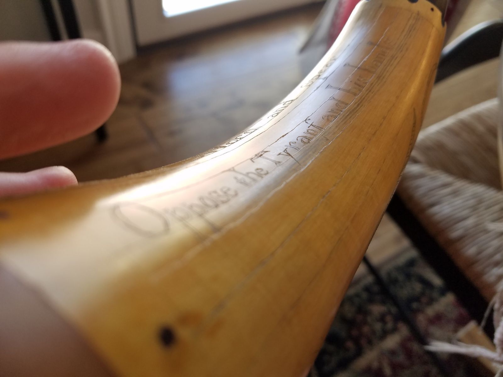 That makes sense. I thought you used India ink, just wasn't sure it would wipe off the horn without leaving a stain or discoloration. I'm enjoying following along. Very interesting.