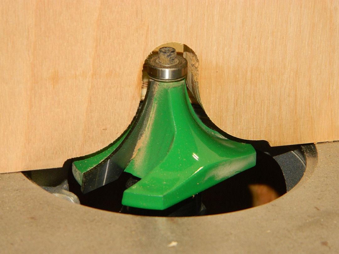 Thought I'd share the fence I made to save me from abuse this large router bit was threatening to make.  Used the bit to round over the outer corner of the 4x4 cedar legs so they would match the corners of the top. Started with the bit bearing flush to the fence face.   After the first leg I noticed the bearing was now 1/8" or so in front of the fence face. Thought for a second I had forgotten to tighten the clamp(s) holding the fence to the metal top. Turned out that the clamps underneath that hold the router in place had vibrated loose.  Tightened them up.  Reset the fence.  Last three legs proceeded fine. Ran the first leg through again just to make sure it had a good rounded corner.  The Dewalt router underneath did the job, but it did struggle a bit.