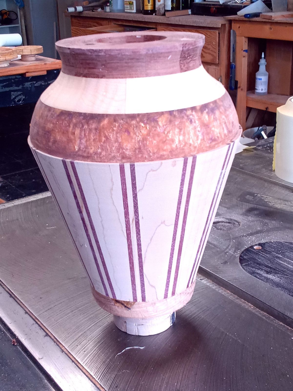 Popular Post calabrese55 Posted November 1, 2023 Popular Post Report Posted November 1, 2023 (edited) After some distraction managed to get the lower part of the vase into a glue up. Material is curly maple & purpleheart. The complete vase (I hope) will look something like the layout detail board I use to design and work out the pieces. calabrese55 Edited November 1, 2023 by calabrese55 forty_caliber, lew, HandyDan and 2 others 3 2 Quote
