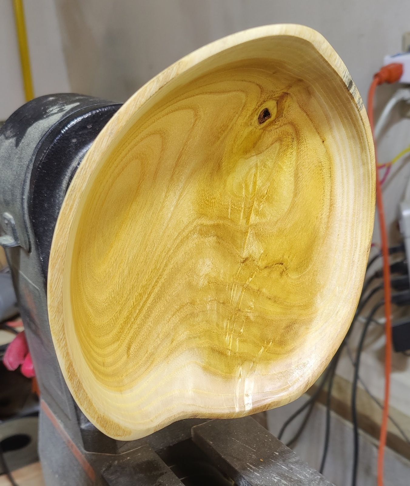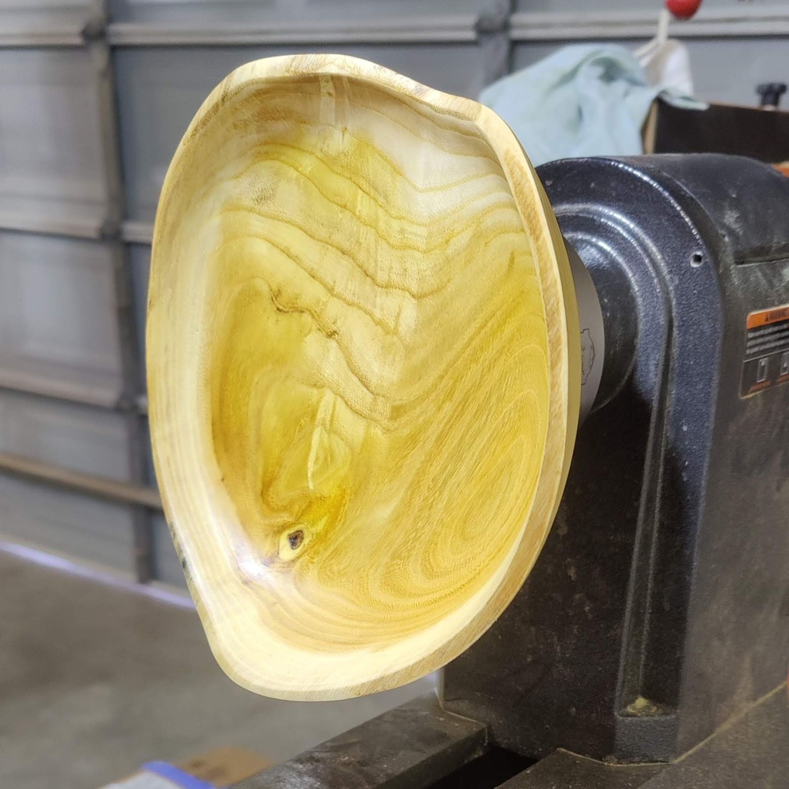 I cut down a large walnut a couple of weeks ago. I took a section and cut some blanks. I turned the bottom and it was looking pretty good. Then when turning the inside, I cut through the bottom. That's one of my biggest flaws I need to work on. Anyway, the wood and my time are free so I'll spin another one up!