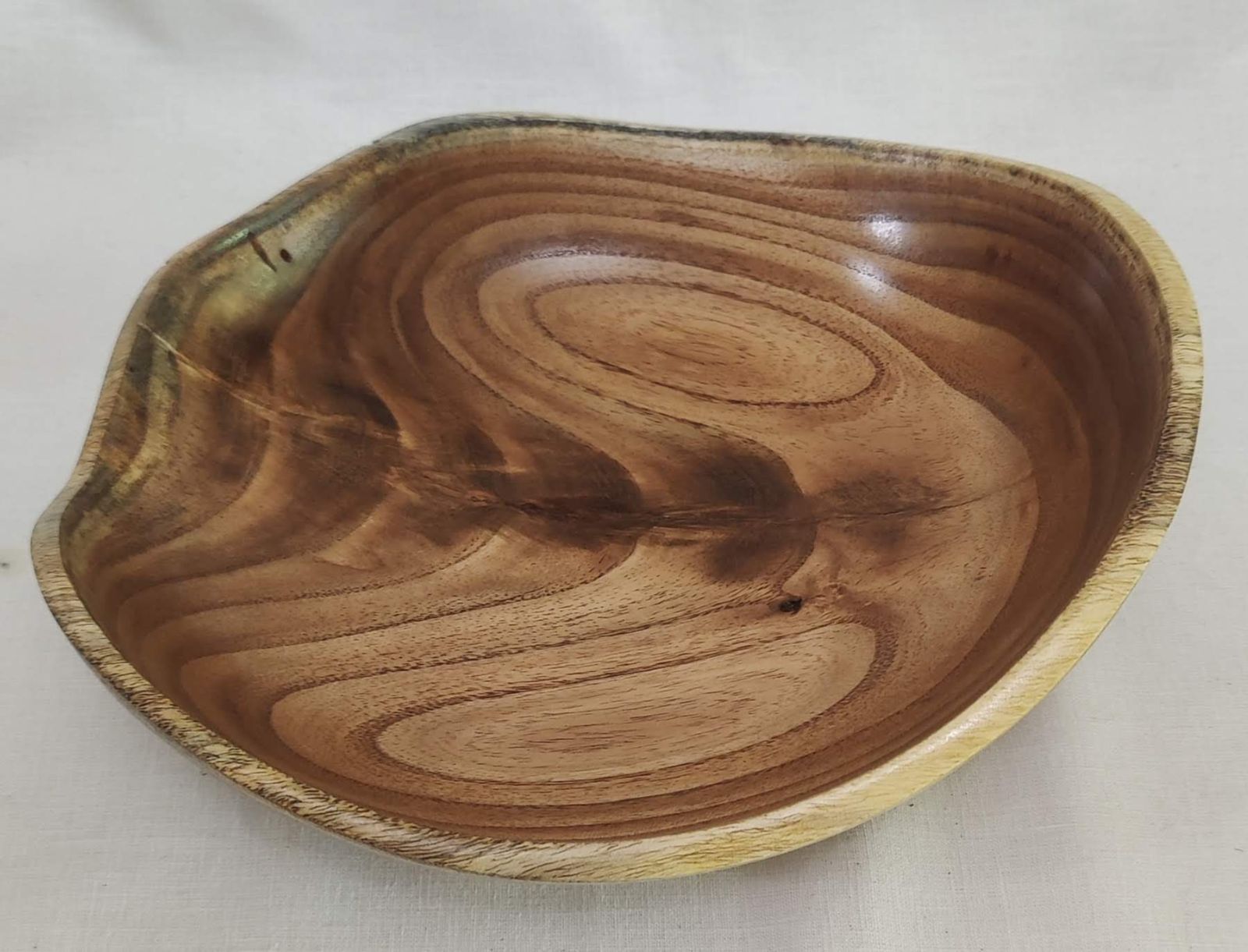 • Simple medium sized platter. Had it completely done but didn't like the way to crack seemed lackluster. Added the pewa patch. Need to refinish with poly