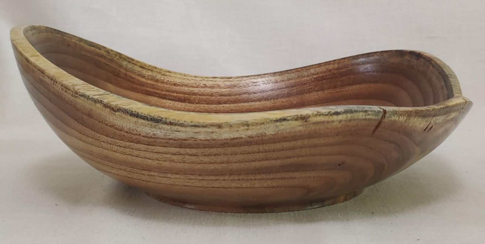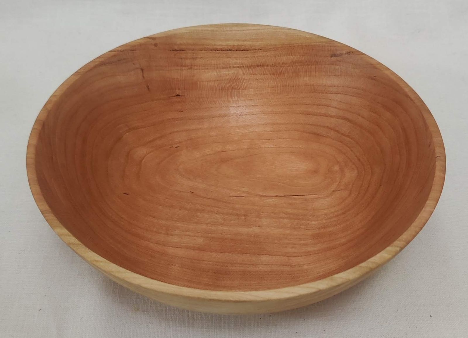 • This is a 16” native cherry bowl. Should have taken more, better pictures. It is cery thin- for me. A little more than 1/8” exept for the thickened areas of the rim, which the hand falls to nicely.