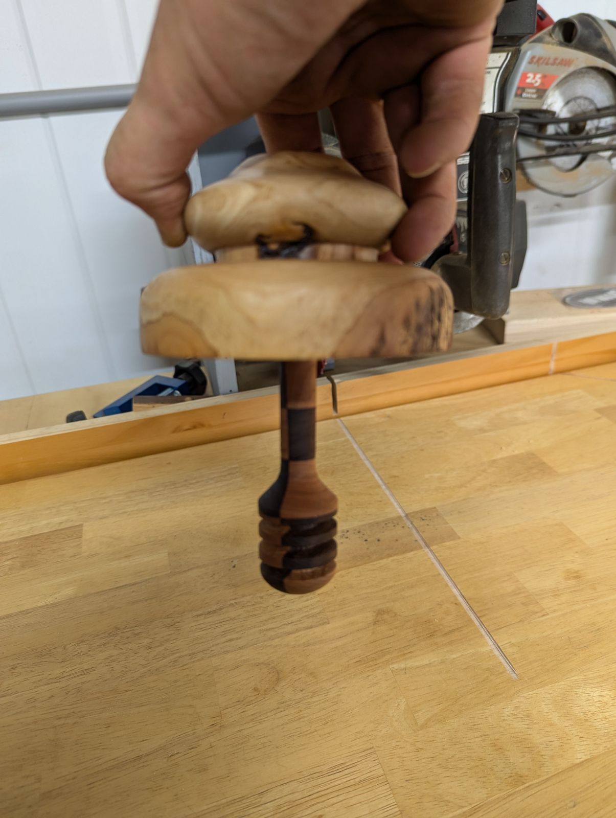 Almost done with sanding and started on collar and finial. I think the collar is rosewood . The finial could be Zircote.