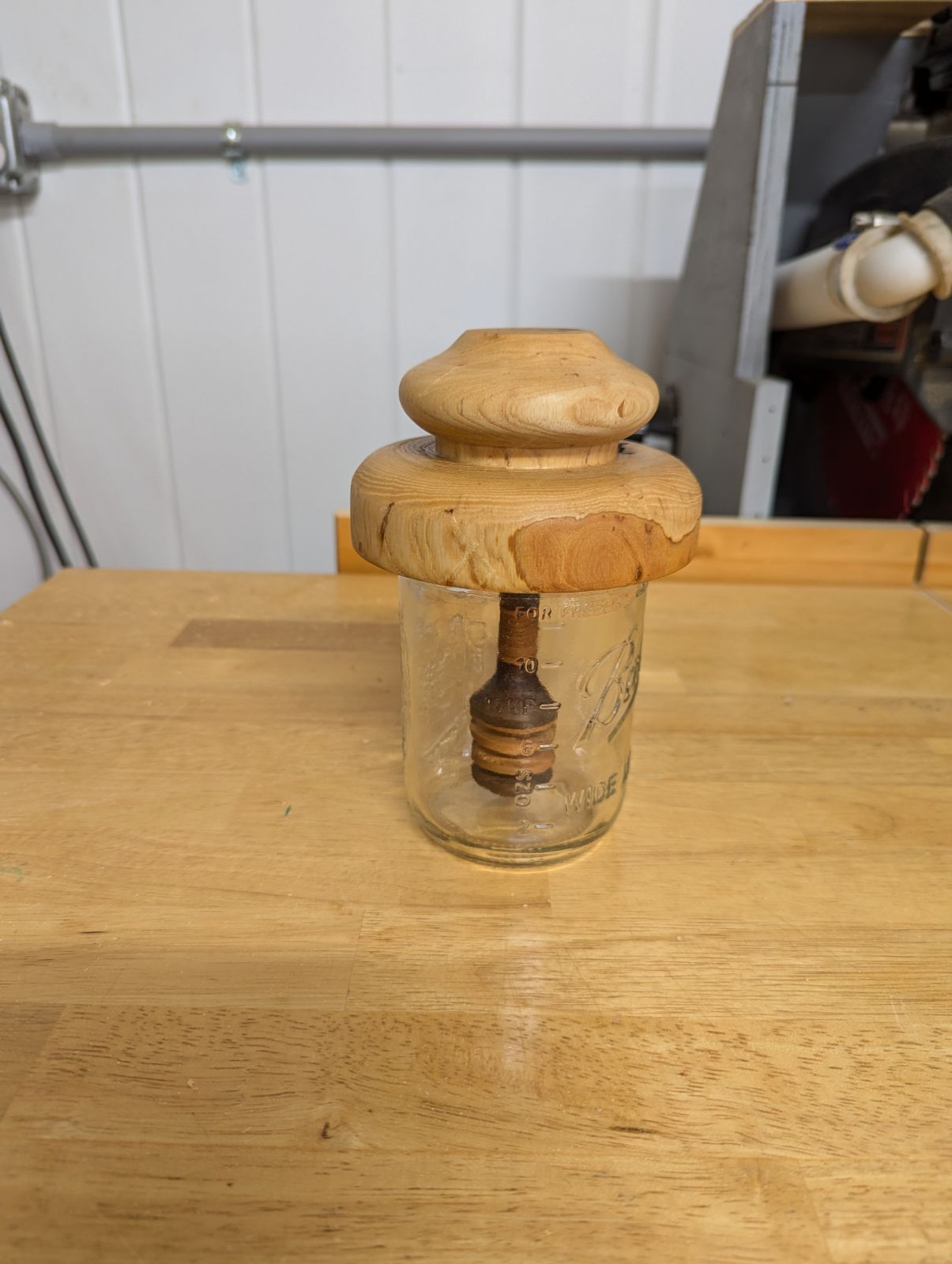 Turned a honey dipper and a piece of Orange Osage. I think the dipper looked a little bit too big for the jar but it'll work.