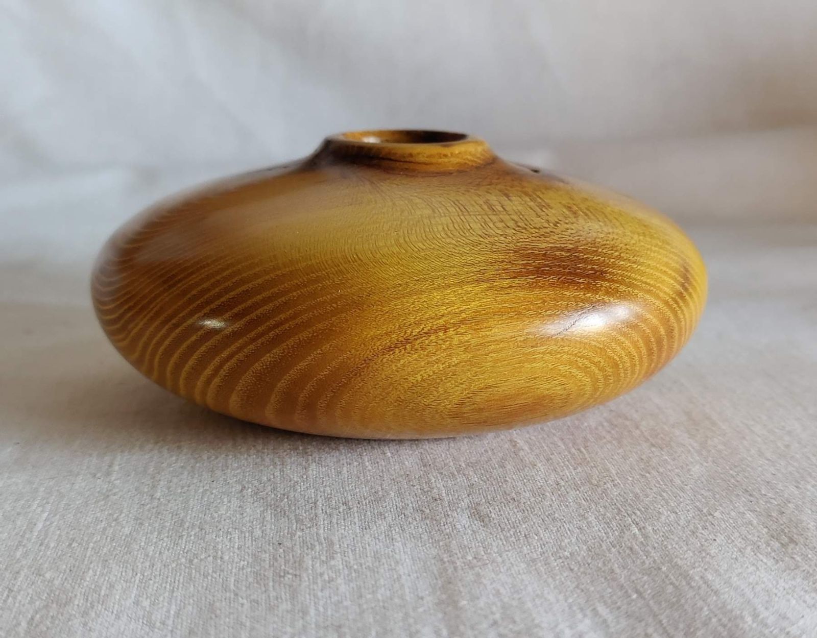 Twice-turned sugarberry. Who says you should cut out the pith? There were some cracks along the pith. It was the perfect scenario for coffee grounds and CA.