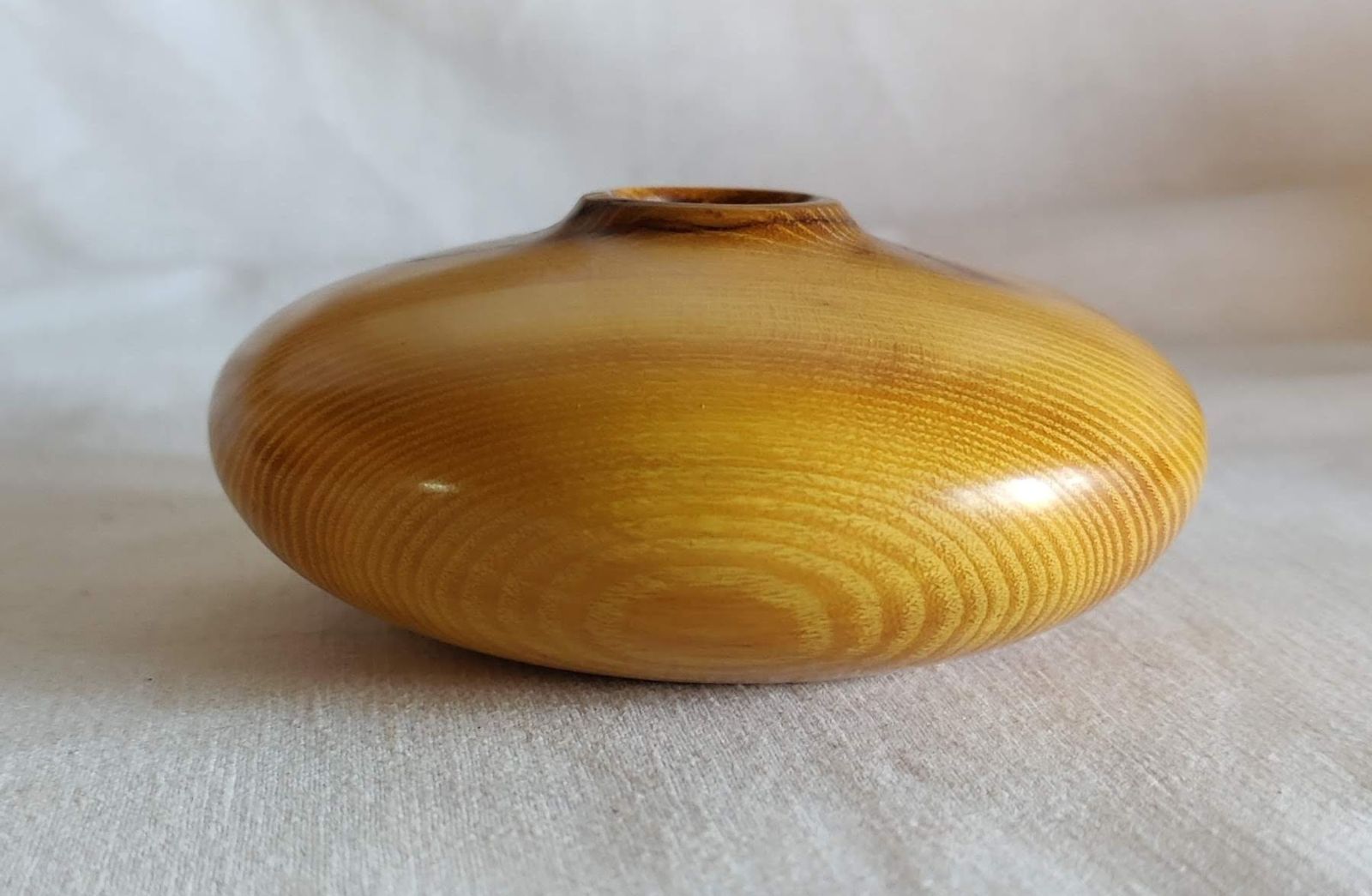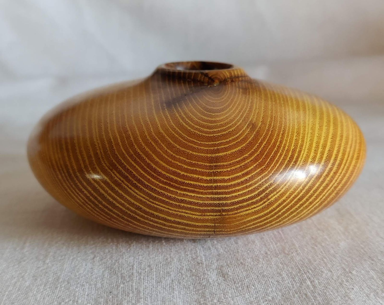 I've had a lot going on so haven't posted here in a while. Here's an Osage orange hollow form that I made for a holiday swap on another forum. I forget the size, but it's between 5 and 6". Finished with Myland's.