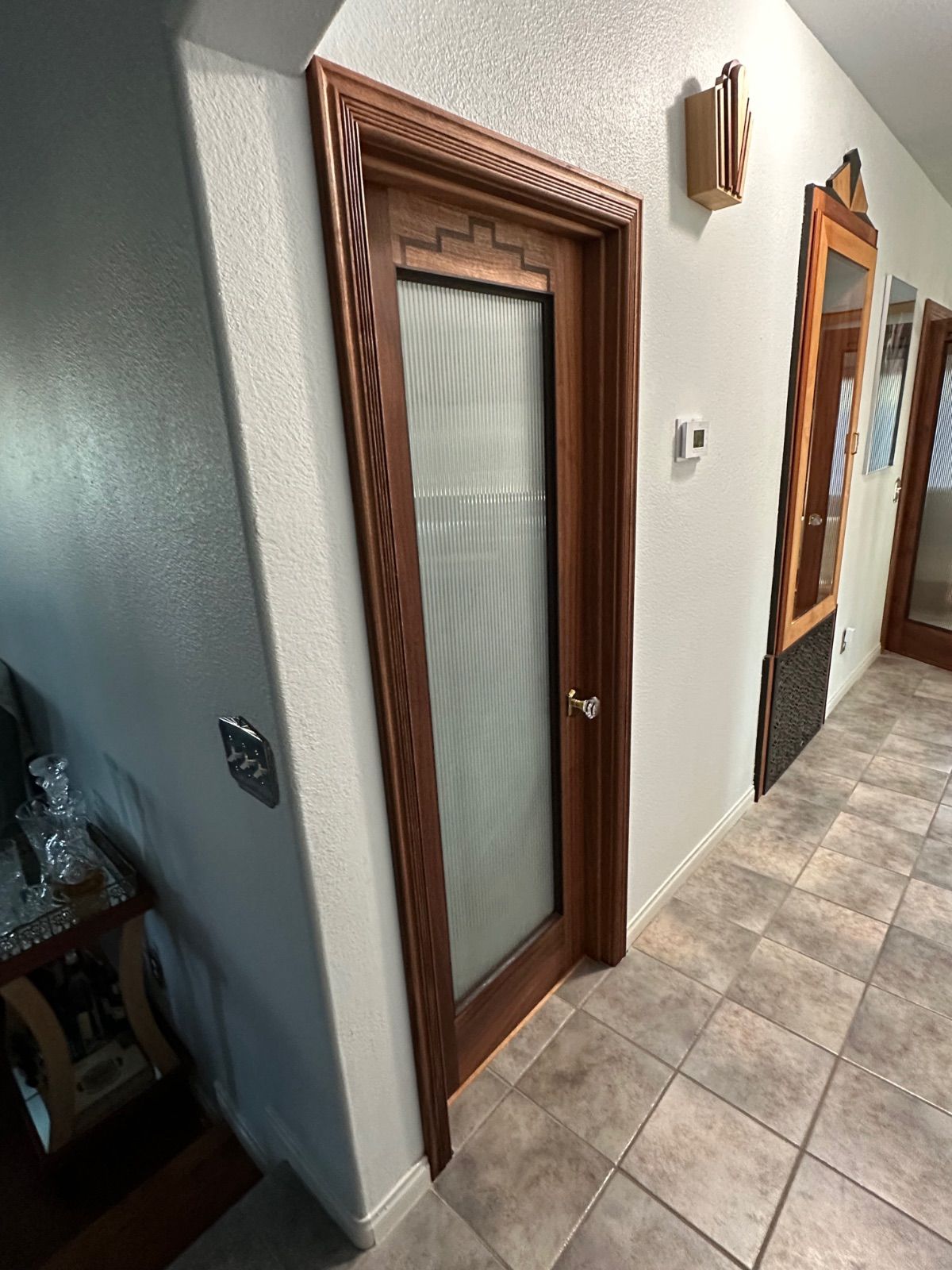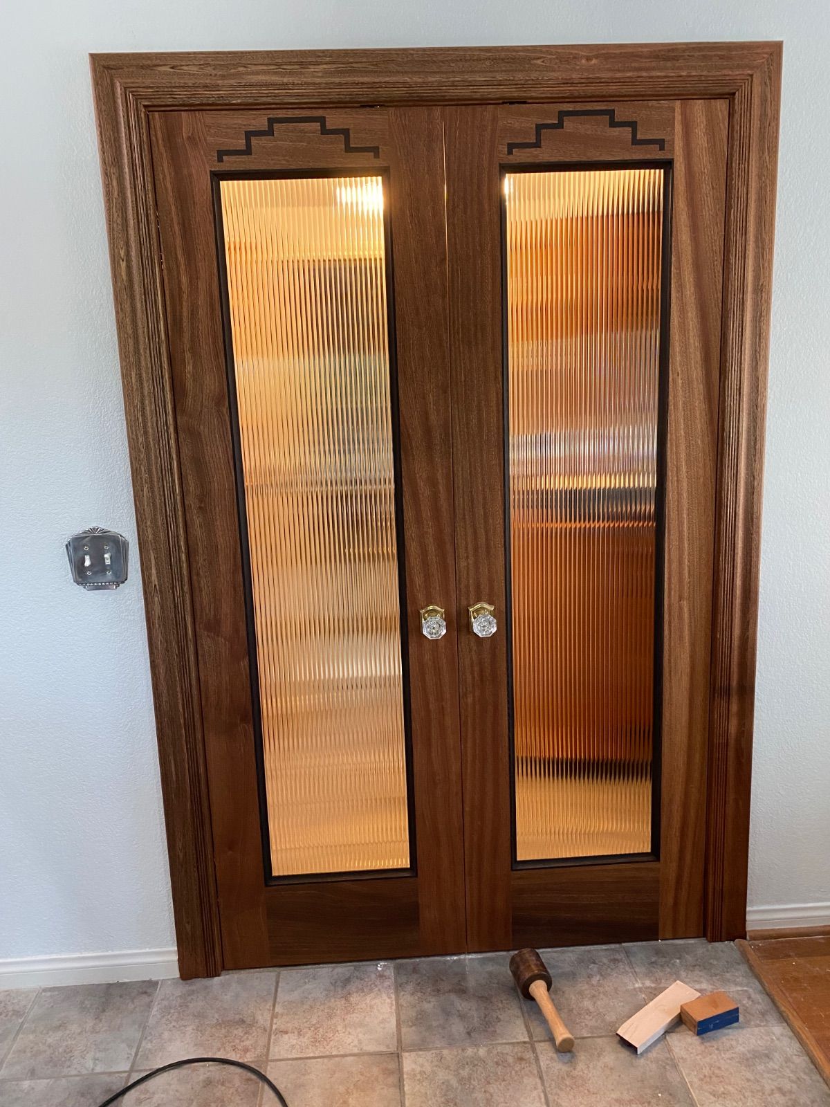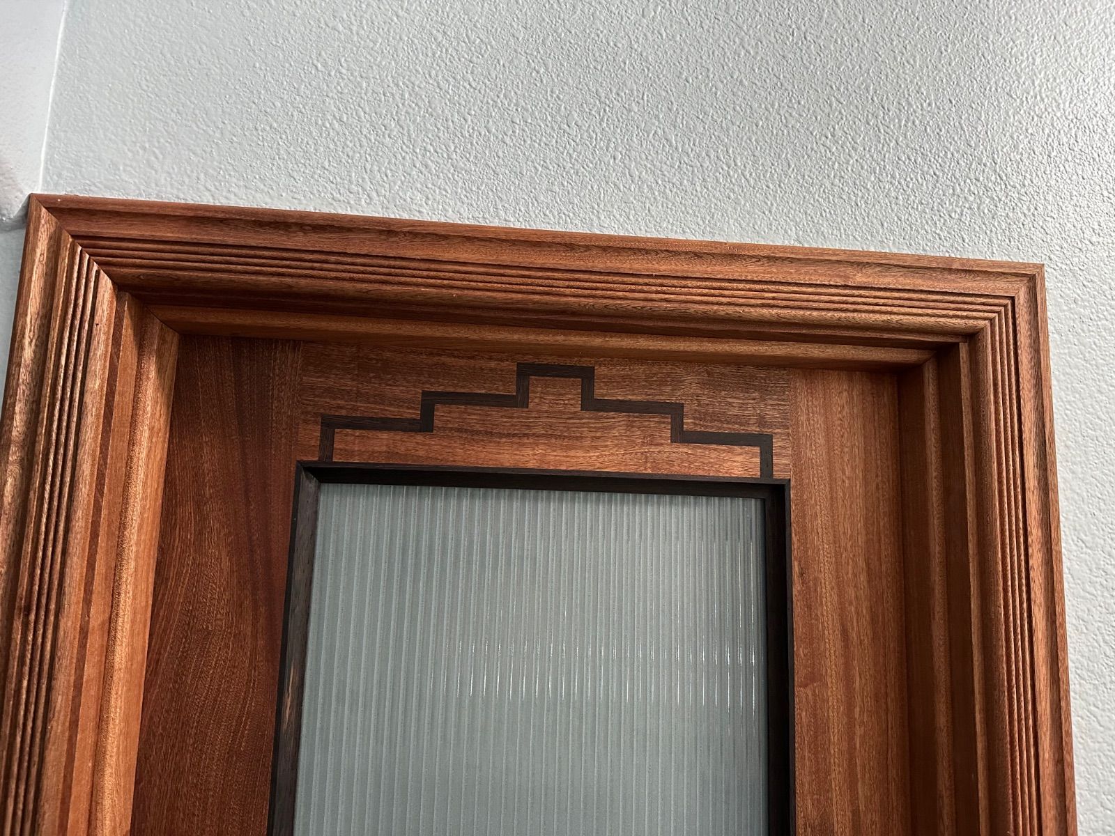 Now that I am pretty much over the COVID thing it has been back to work on the doors. At this point all 13 top pieces have been inlaid and most of the lamination is done. The lockset hardware is still a couple of days out and will hopefully be here this week. I still have to get approval on the moulding and then it’s march through this house installing doors.
