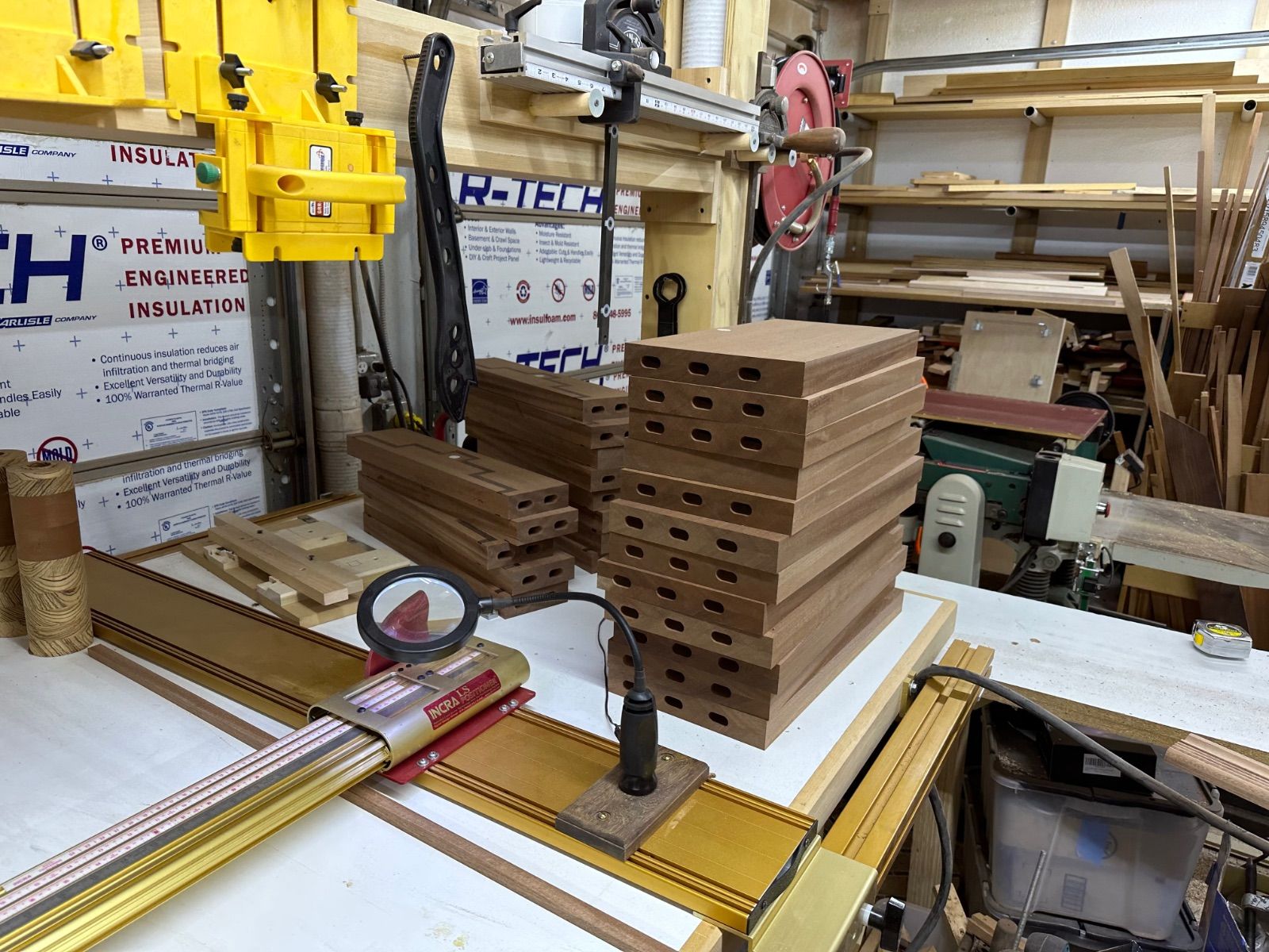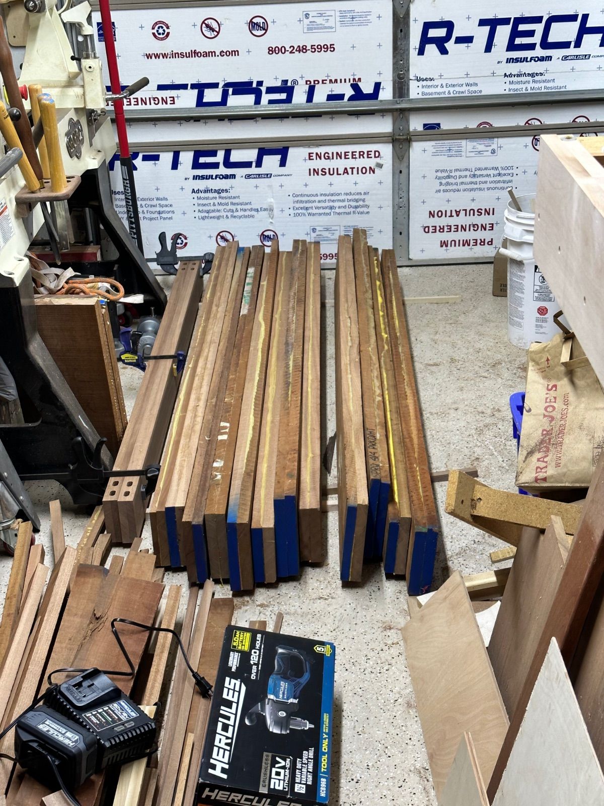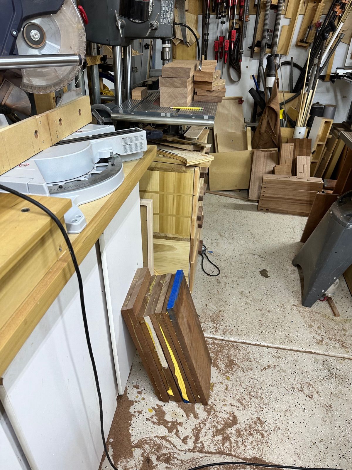 Not a lot happening except for a lot of glue up. I should be done gluing up components in the next few days as well as the routering for the inlays. The glass for door number two and the hardware for all the doors will be here next week. I am going over to the coast to pick up more Wenge and spend some time on the boat.