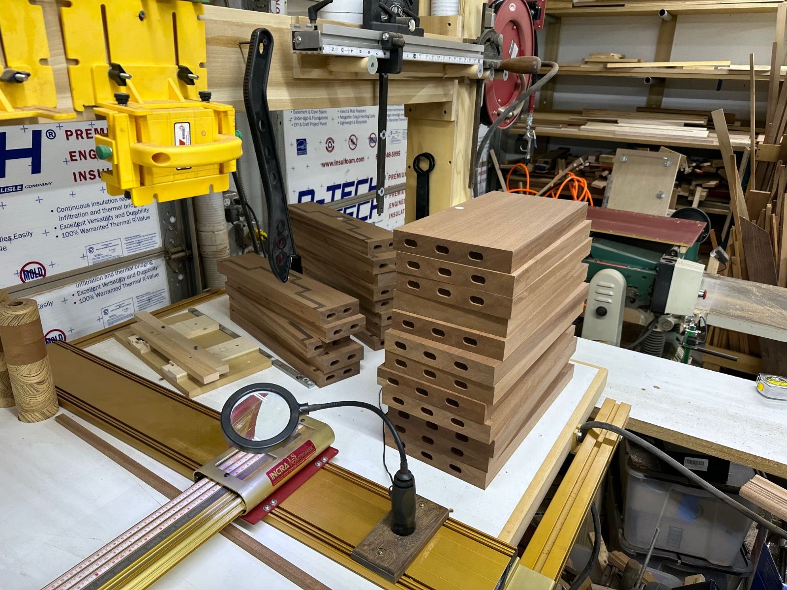 Now that I am pretty much over the COVID thing it has been back to work on the doors. At this point all 13 top pieces have been inlaid and most of the lamination is done. The lockset hardware is still