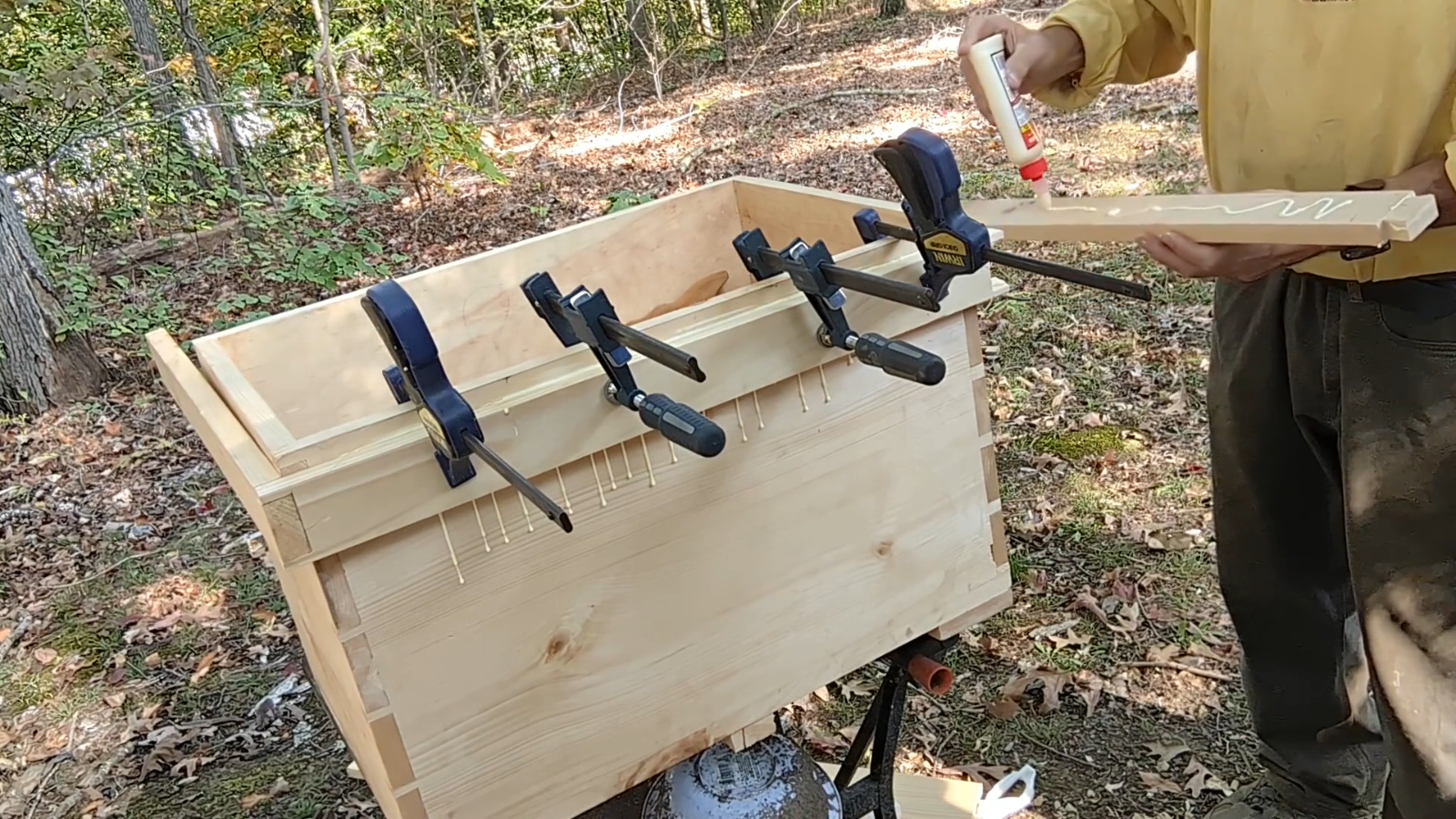 October 22, 20241 yr Author Popular Post Then it was on to gluing up the skirting that goes around the top of the chest underneath the lid. Squirt on some glue.... And use the best glue spreader, the one the Master created.