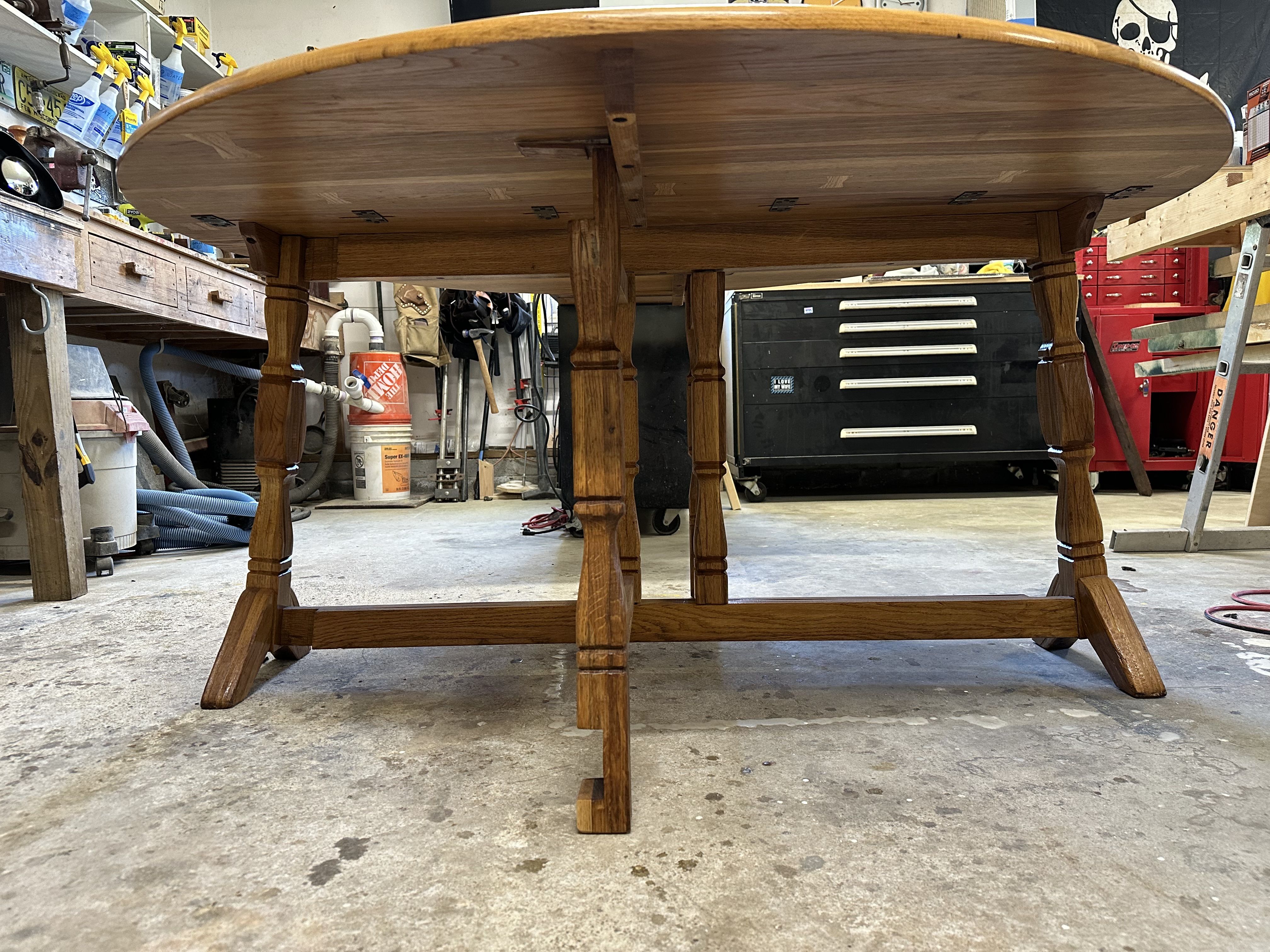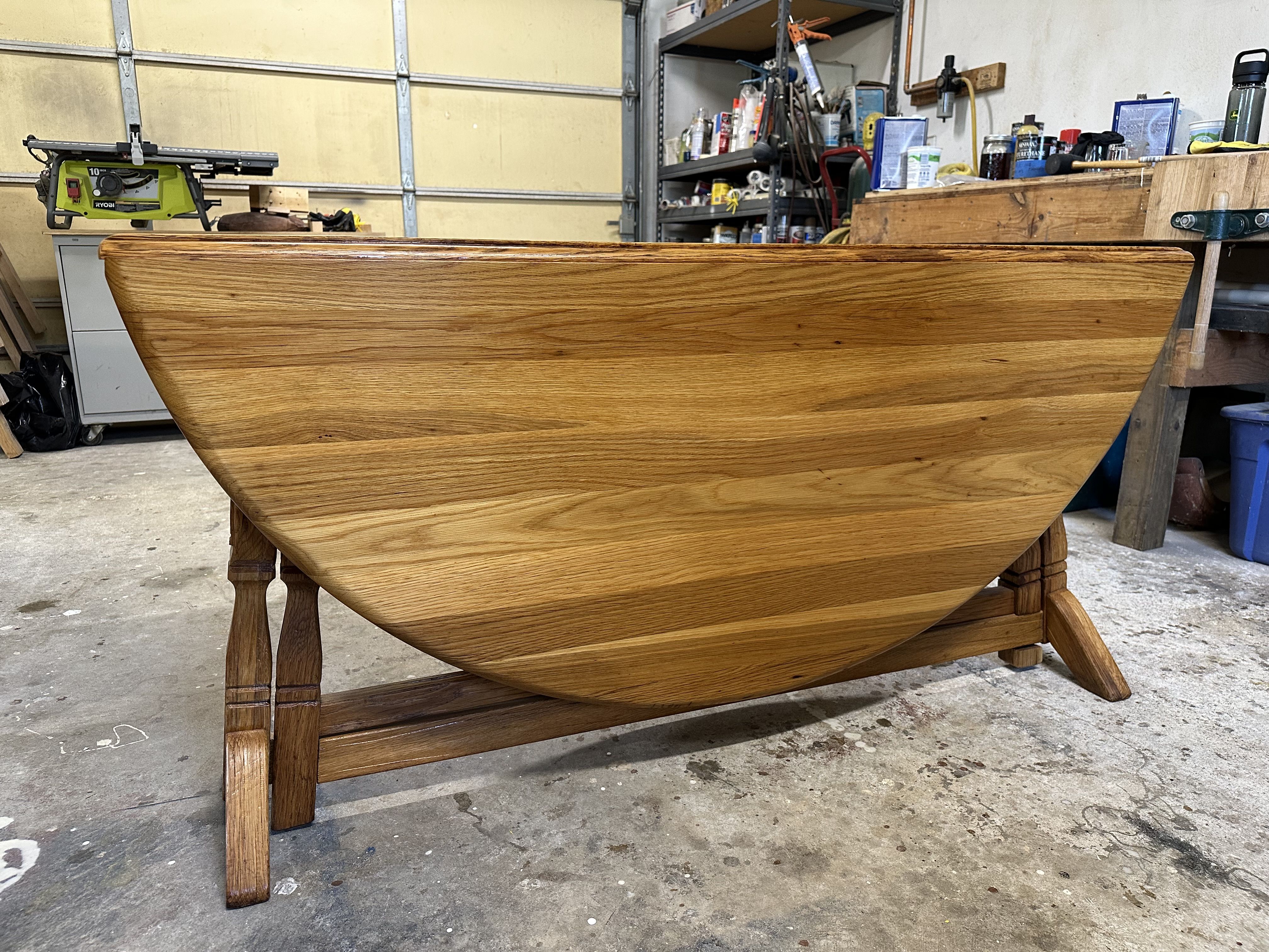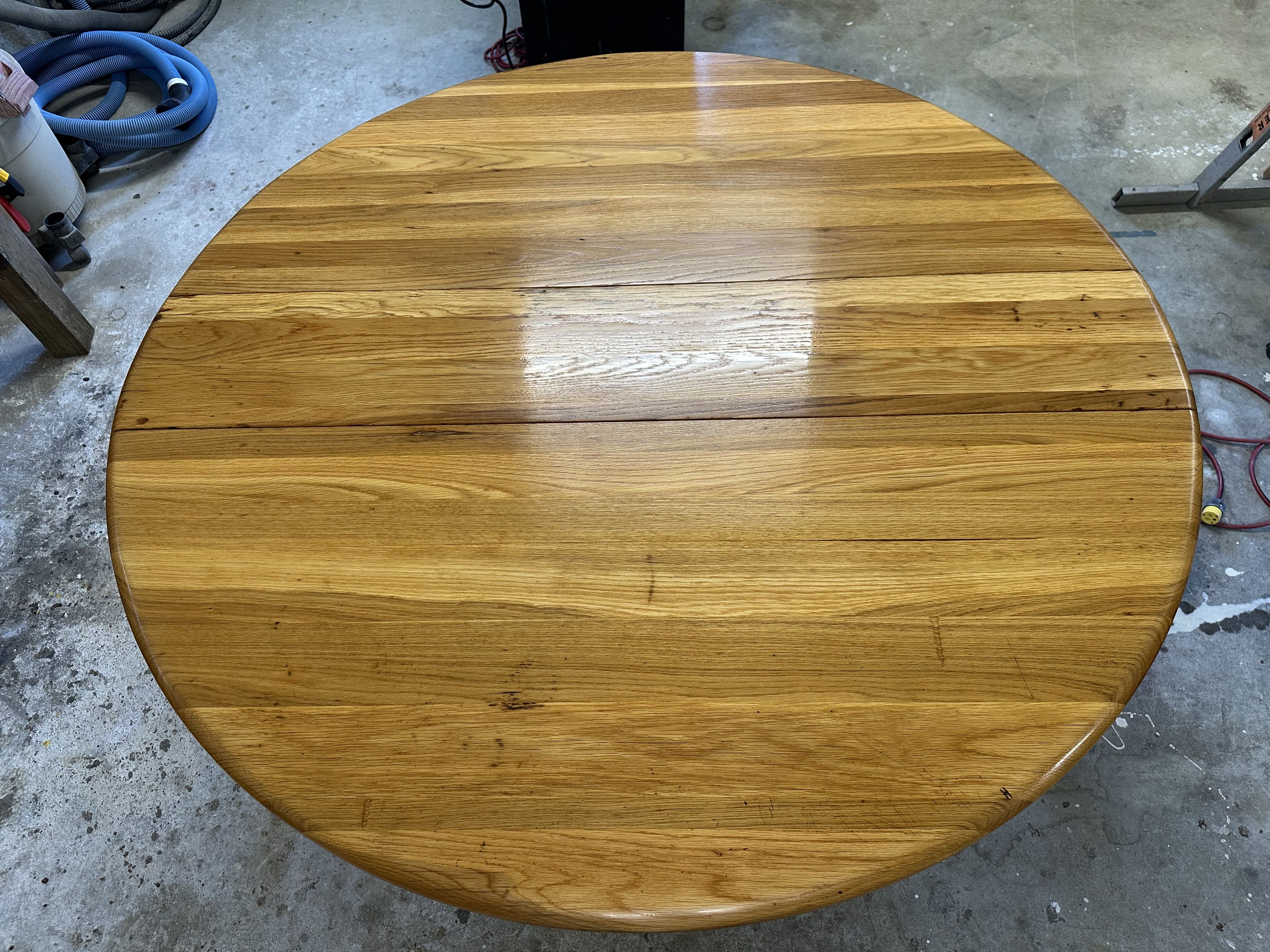 Finished the table. Rubbed the whole thing with 0000 steel wool and waxed it. I’m happy with how it came out, all of the old remembered character marks are still in it.
